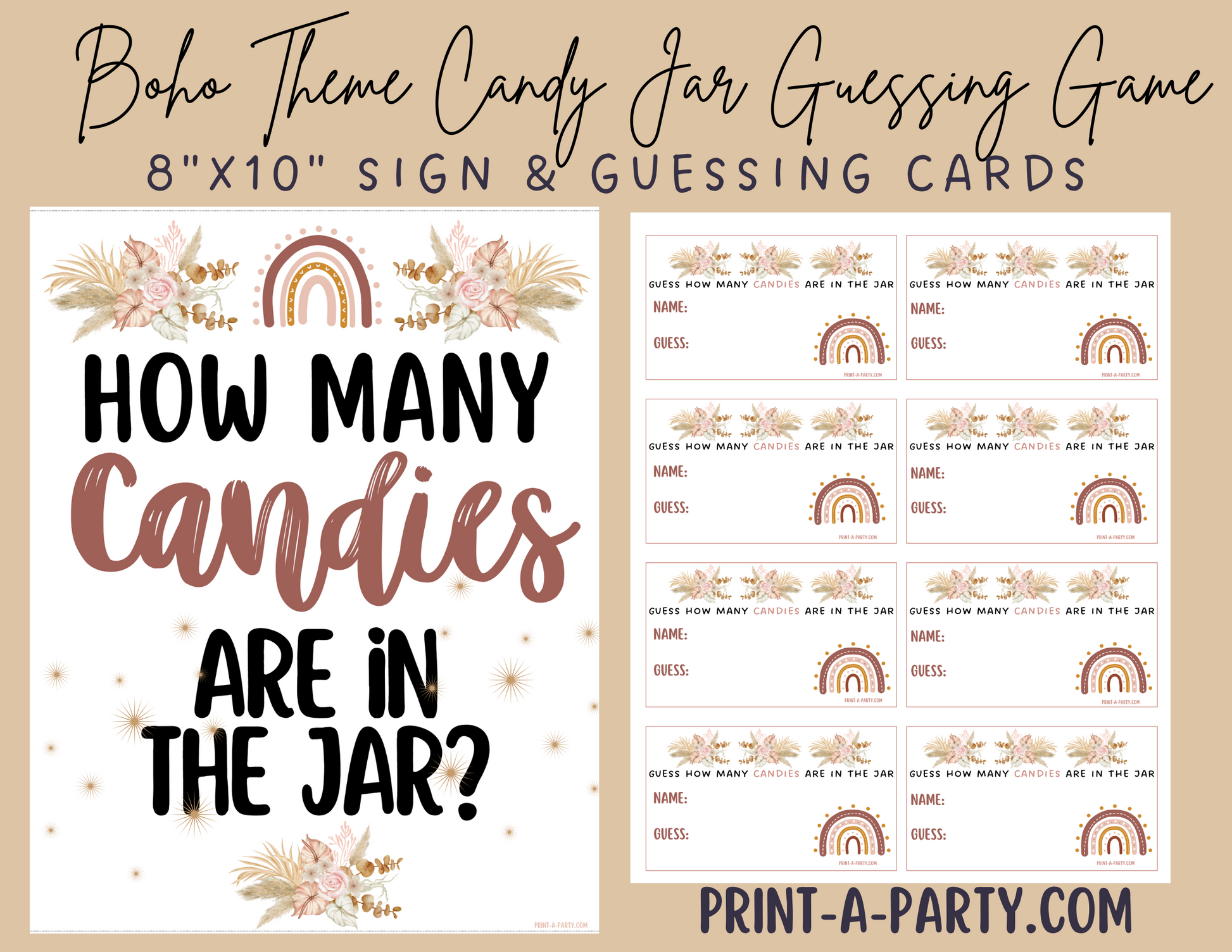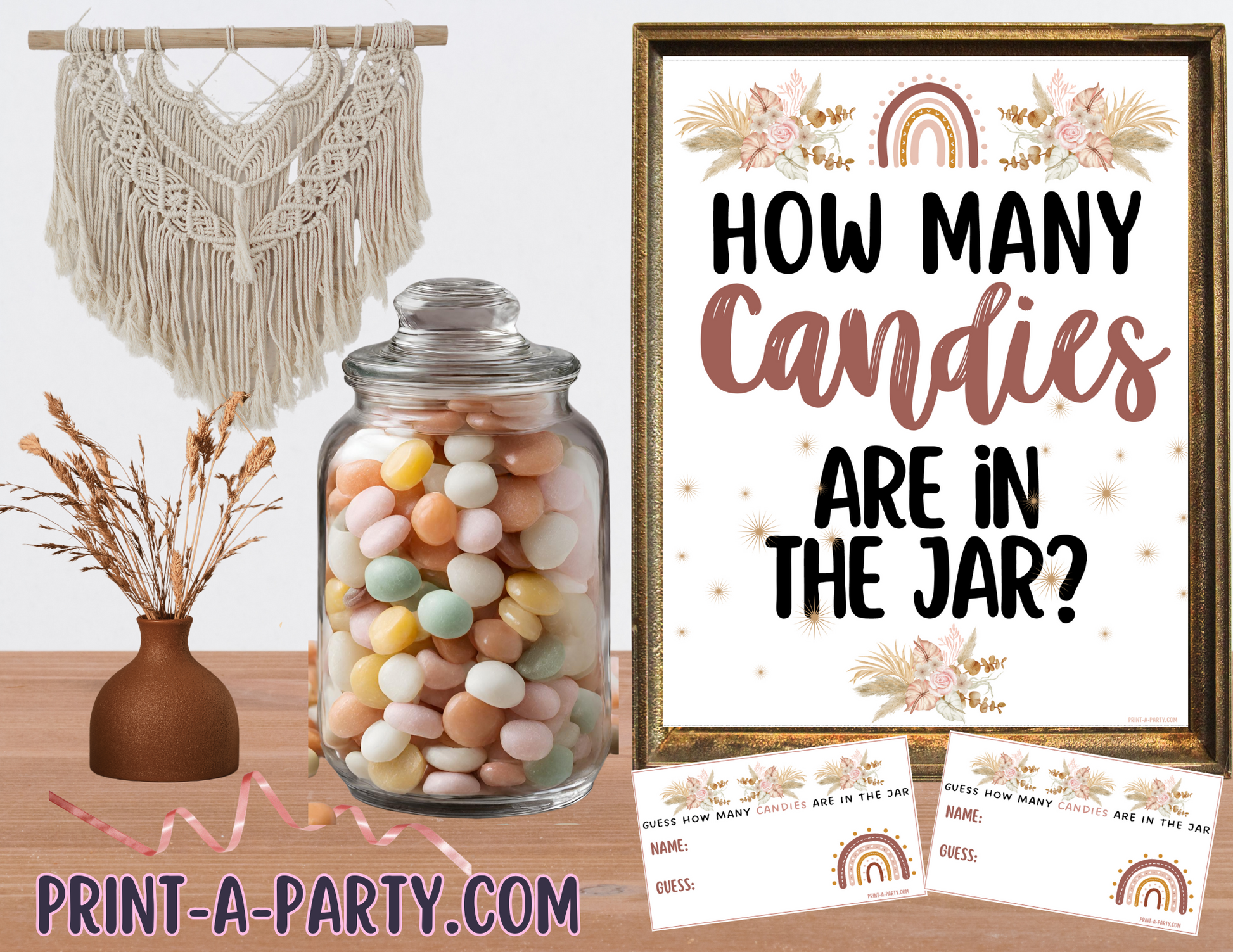 CANDY JAR GUESSING GAME - Boho Candy Jar Guessing Game – Neutral Printable Sign & Cards for Showers, Parties, Rustic and Neutral themed events