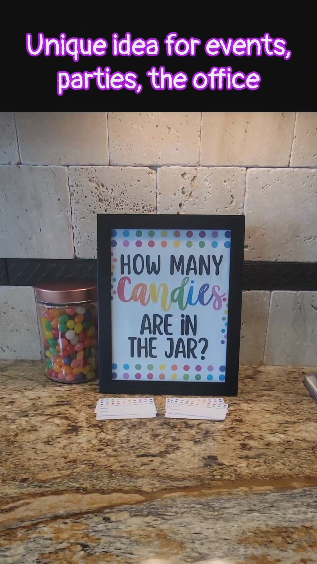 – Sized to fit an 8x10" frame (prints on 8.5x11" paper with cut guidelines) - 1 Sheet of 8 Guessing Cards (2" x 3.5" each)