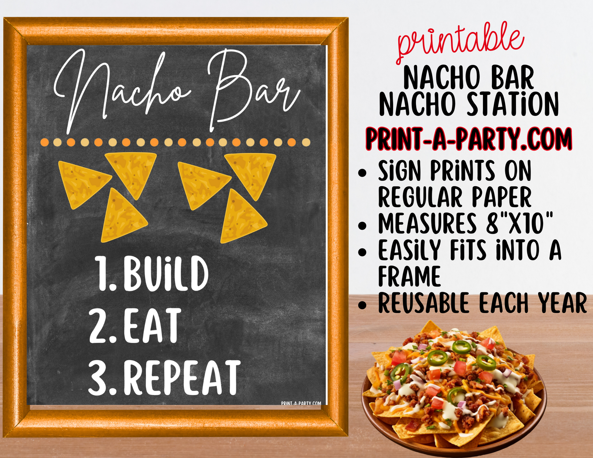 Spice up your celebration with this printable Nacho Bar sign and tent card set – the perfect addition to your party food table! Whether you're hosting a birthday party, Cinco de Mayo celebration, baby shower, bridal shower, holiday gathering, or any fun event, this DIY nacho station will add a festive and flavorful touch.