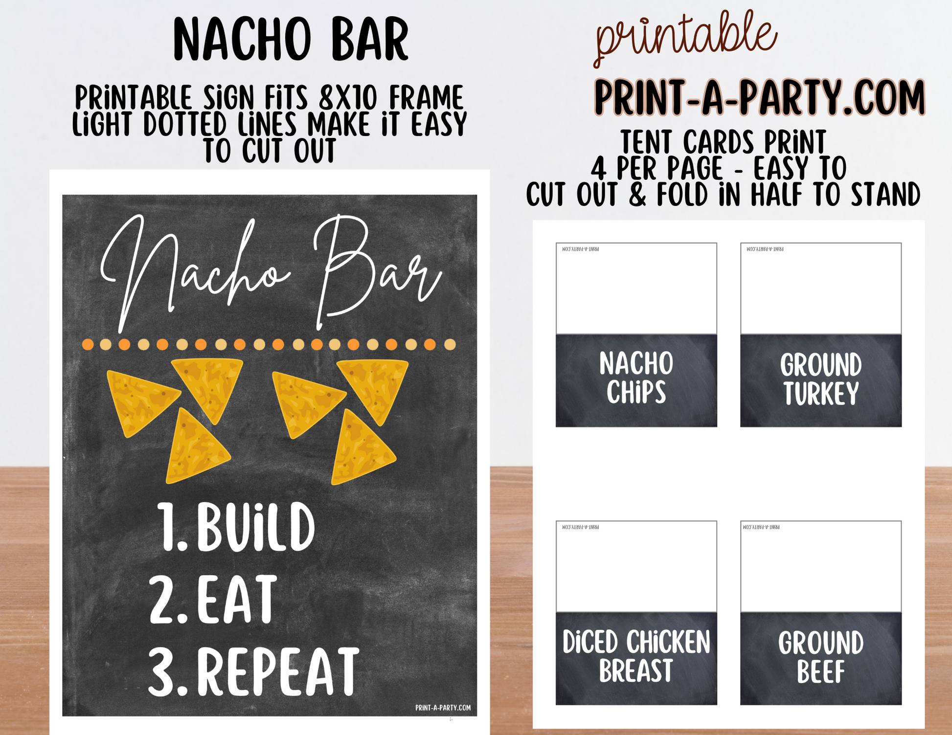 Just download, print, cut, and set up your nacho bar buffet in minutes – it’s a simple yet crowd-pleasing way to elevate your party food setup.