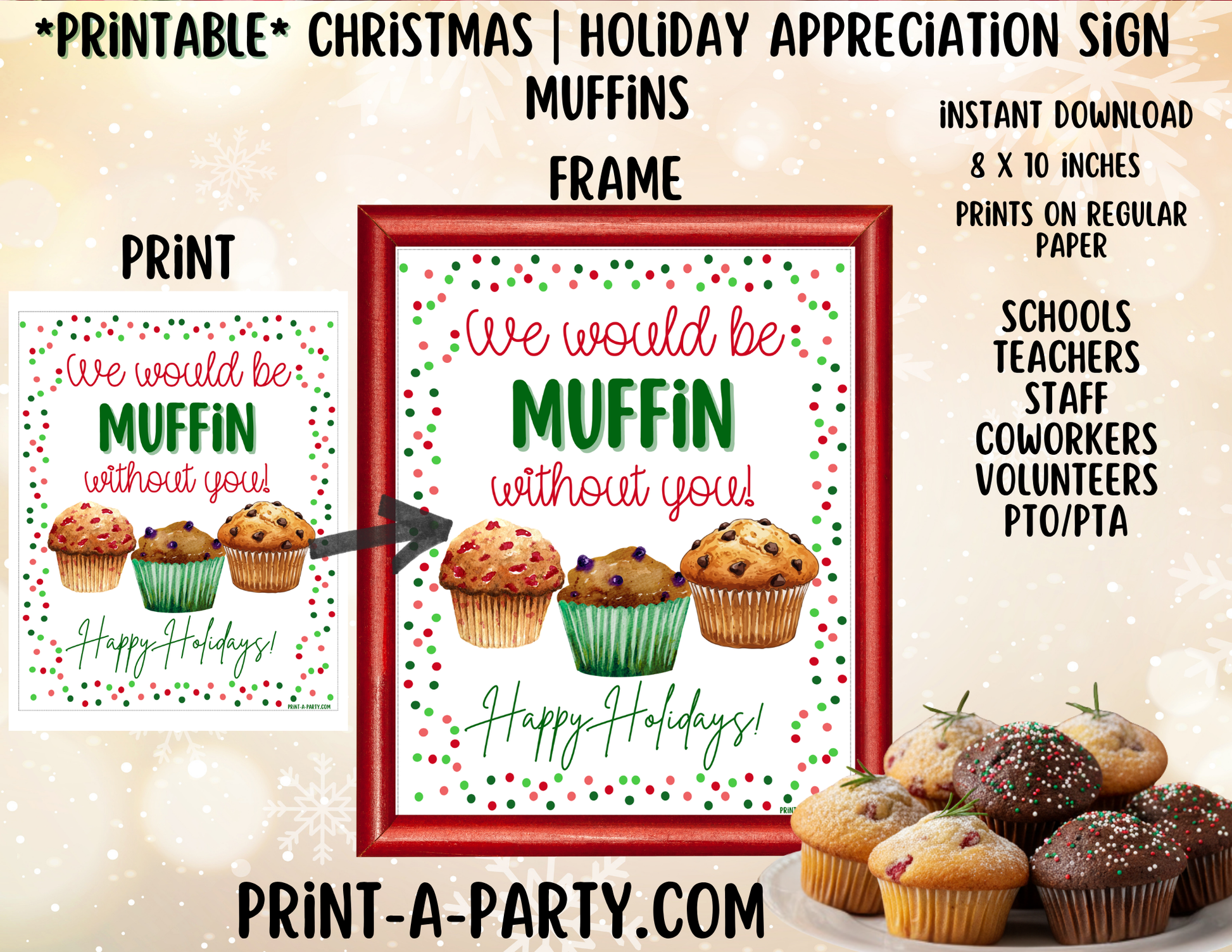 Appreciation Sign: Holiday Printable Christmas MUFFIN Appreciation Sign – Festive 8x10 Holiday Decor for Staff, Teachers & Volunteers