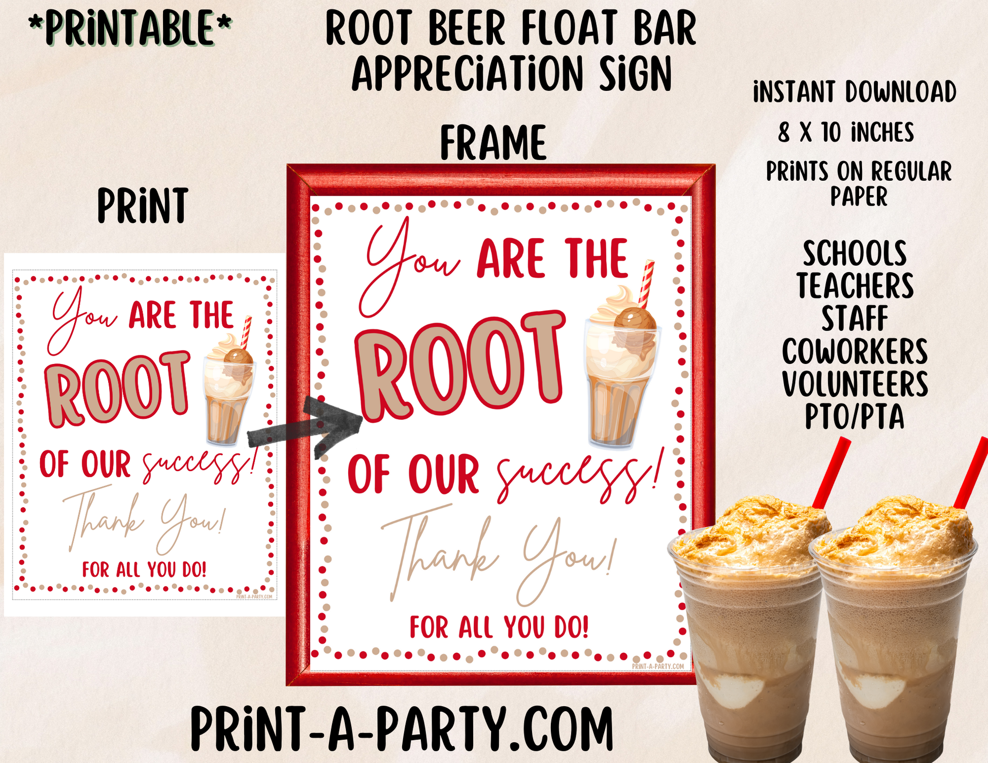 Appreciation Sign - Root Beer Float Appreciation Sign Printable | “You Are the ROOT of Our Success” | 8x10 Employee & Teacher Appreciation
