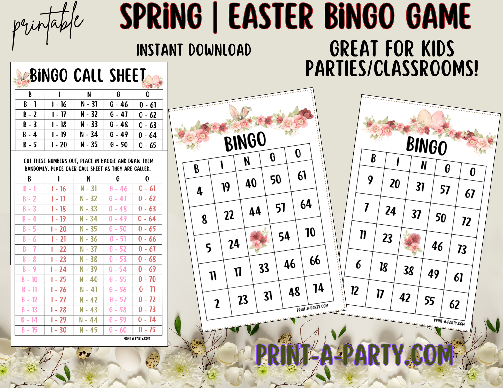BINGO: Spring Easter Bingo | Spring Florals | Spring Activities | Parties | Classroom | 30, 40, or 50 cards