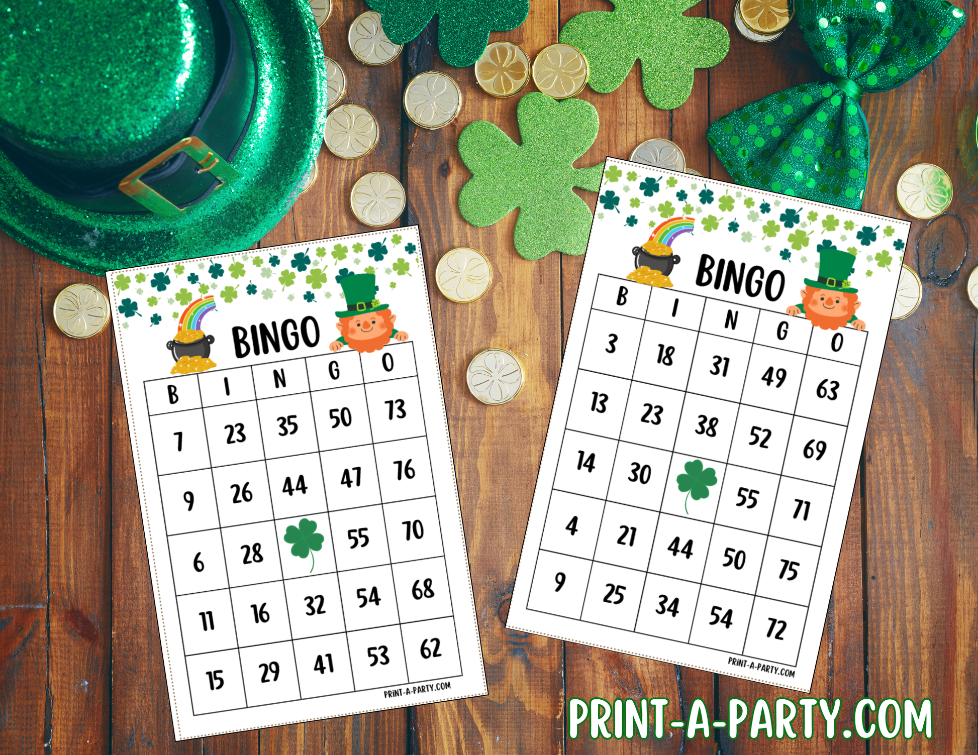 Celebrate St. Patrick's Day with a printable game of Bingo! This fun twist on traditional BINGO will bring the luck of the Irish to any event. With 30, 40, or 50 unique cards to choose from, you can create a memorable experience for kids, parties, or classrooms. Each set includes randomly numbered Bingo cards, a Bingo call sheet, and a page of call numbers for easy playing all in a festive St. Patrick's Day theme. Don't wait - download now for instant fun! Cards and call sheets print on regular paper - and games print 2 per page measuring 5x7" each. Dotted lines make it easy to cut out.