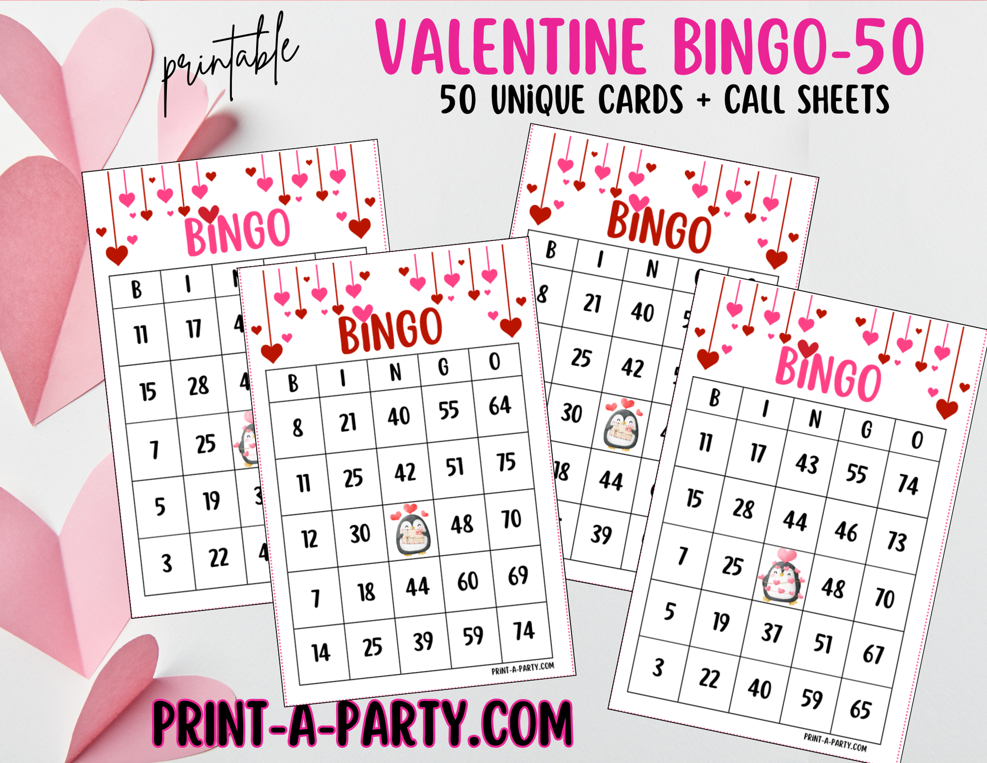 Fall in love with game time using this adorable Printable Valentine’s Bingo Game featuring charming penguin illustrations! Perfect for classrooms, Valentine’s parties, family nights, or group activities, this instant download makes celebrating the holiday fun and easy. Choose from 30, 40, or 50 bingo card options, all designed for simple print-and-play convenience.