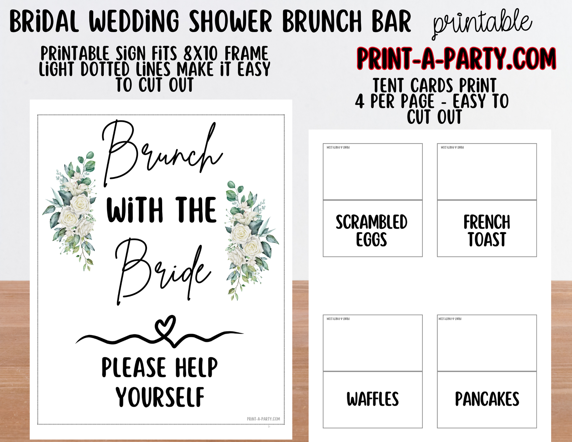 Make your bridal brunch or wedding morning breakfast bar extra special with this printable Bridal Brunch Bar Kit! Featuring a stylish “Brunch with the Bride – Please Help Yourself” sign and matching tent cards, this set helps you create a warm, organized, and picture-perfect food station in minutes.