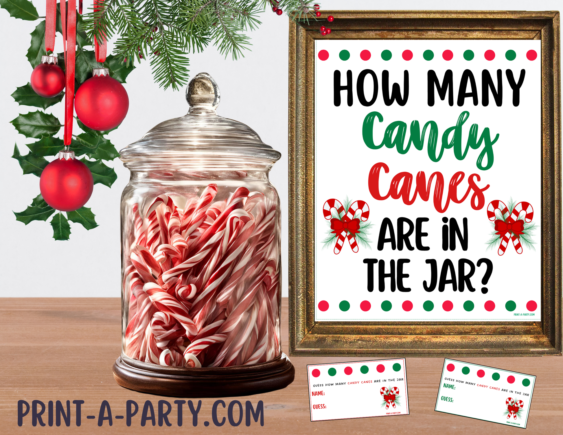 Candy Jar Guessing Game - CHRISTMAS CANDY CANES - Printable Holiday Party Game for Kids, Classrooms, Parties and Office Fun!