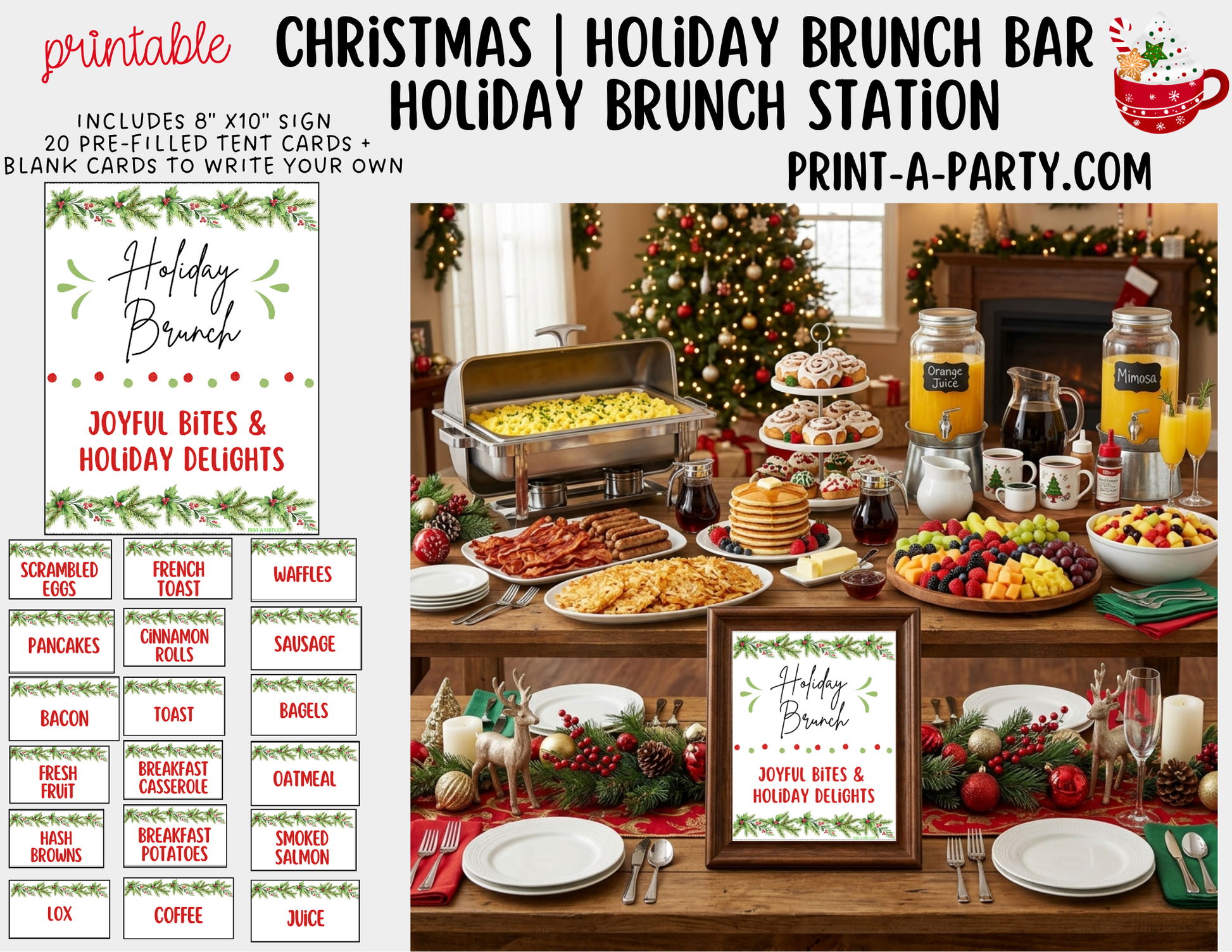 Christmas Brunch Bar Sign (8x10) & Food Tent Cards Printable Holiday Buffet Decor