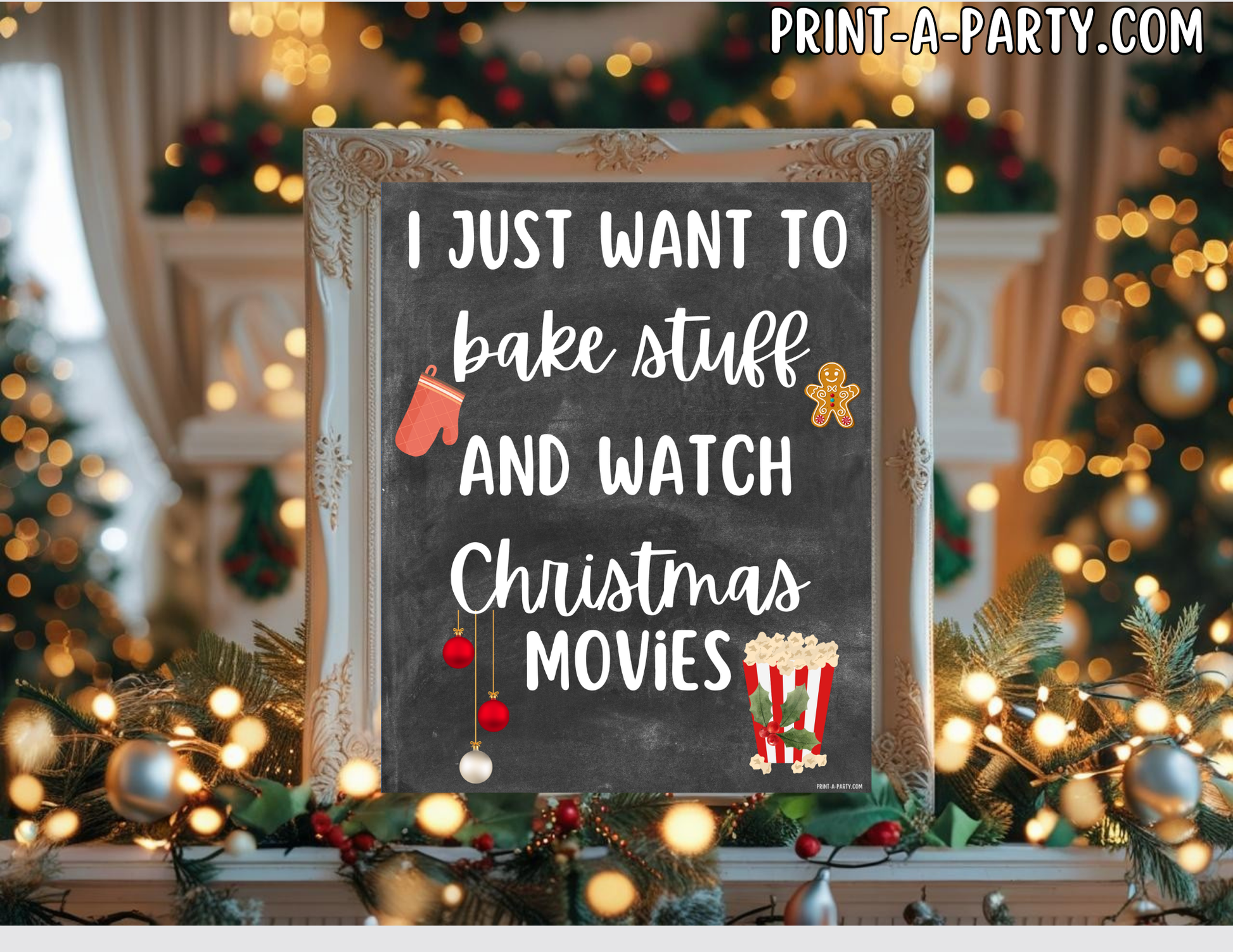 I JUST WANT TO BAKE STUFF AND WATCH CHRISTMAS MOVIES Printable Christmas Sign, Instant Holiday Decor in 8x10 and 5x7
