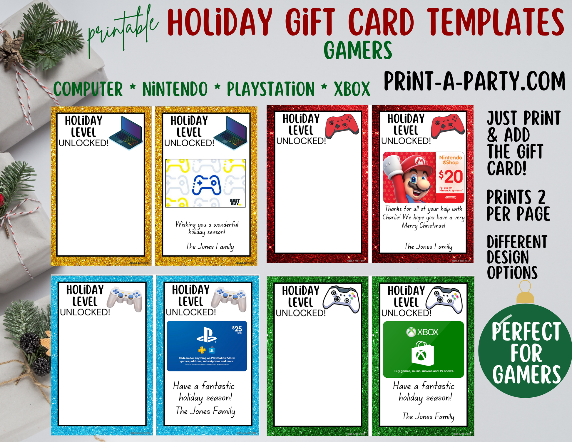 GIFT CARD Gamer Gift Card Holder Printables – Video Game & App Store Gift Card Templates