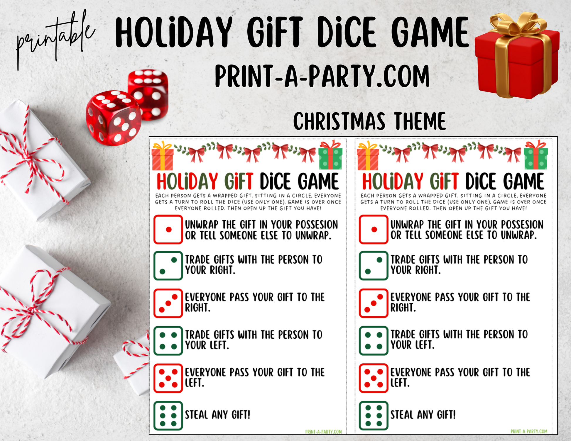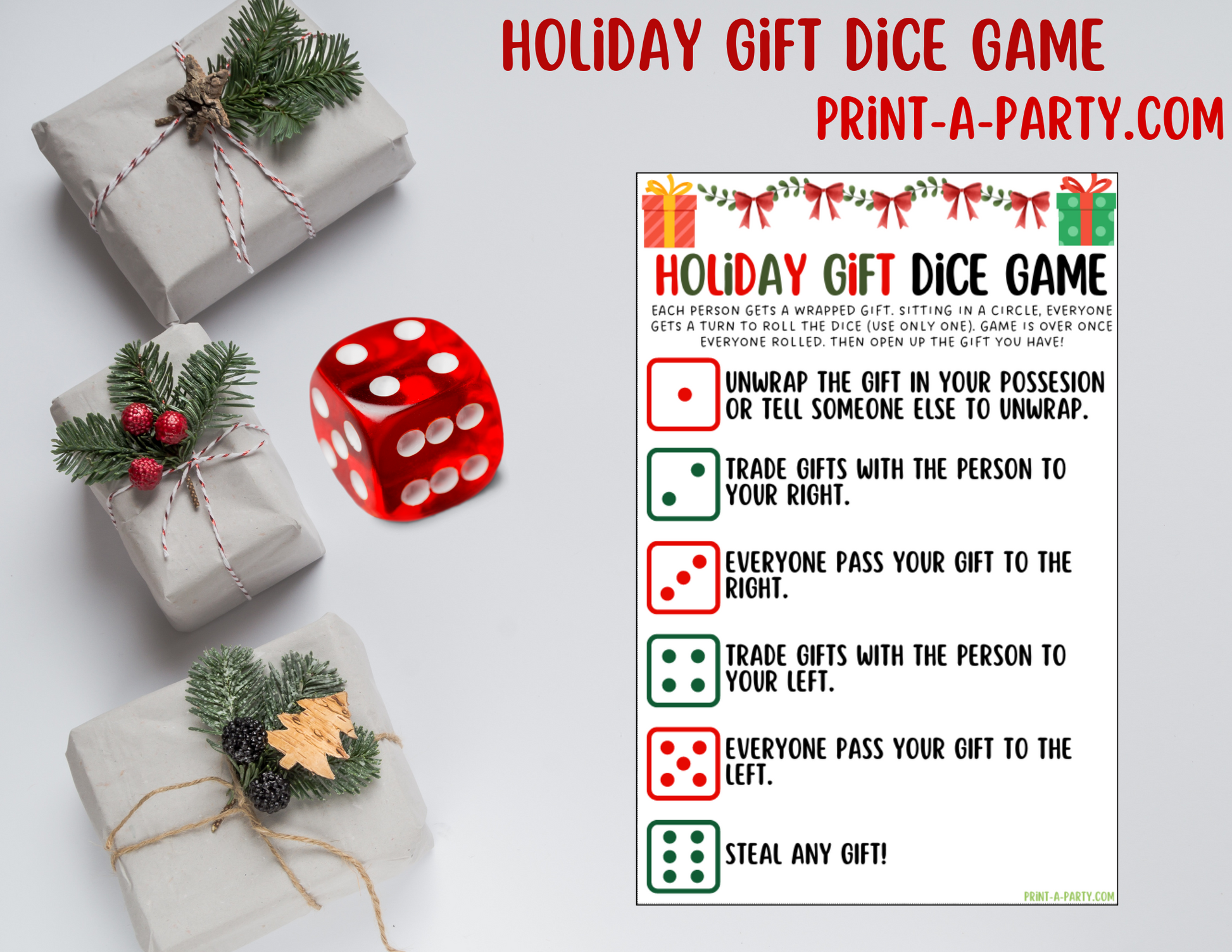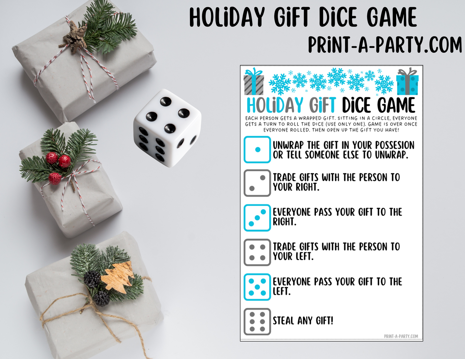 DICE GAME- Printable Holiday Dice Game – Fun Christmas Gift Exchange Party Activity (White Elephant, Secret Santa, Grab Bag)