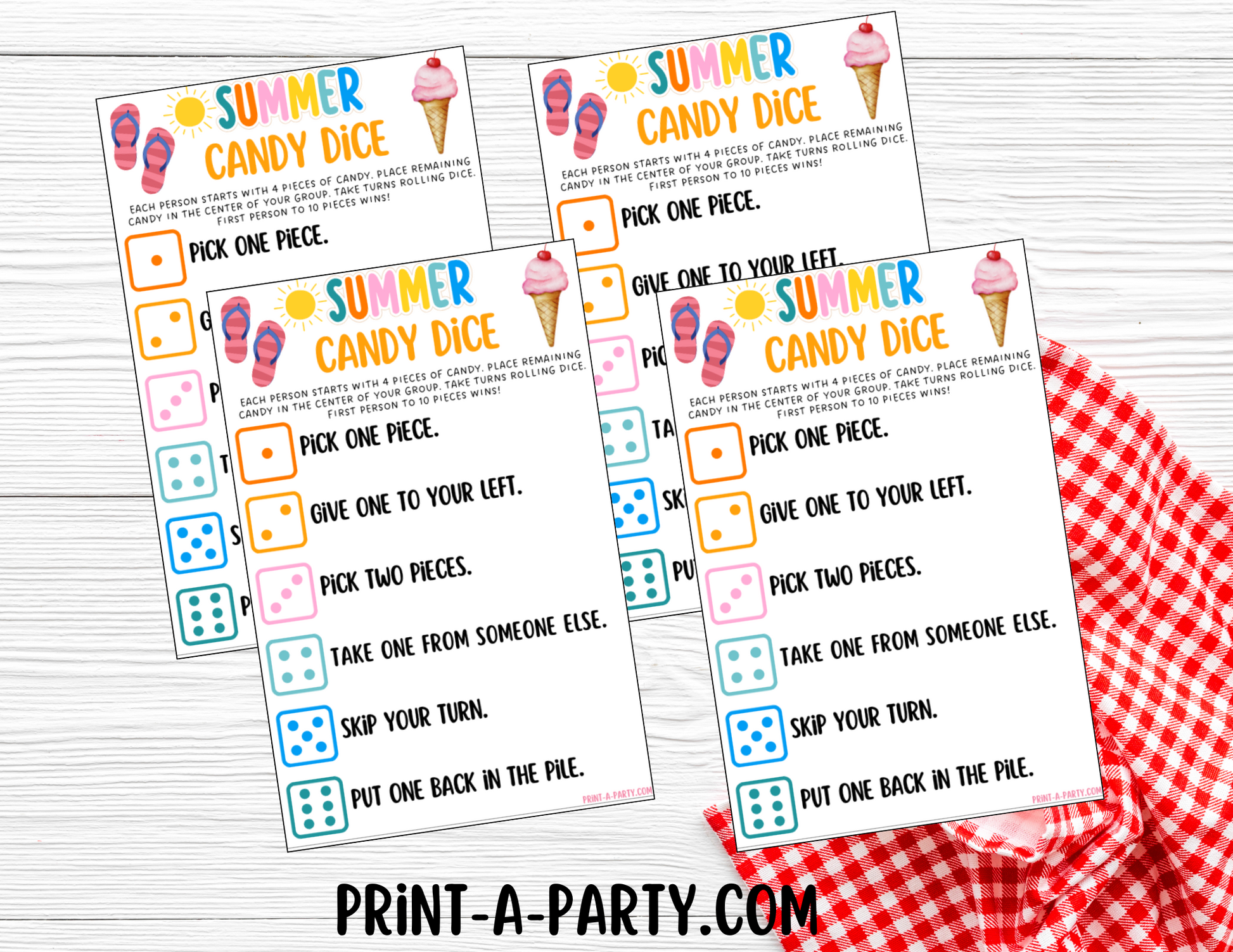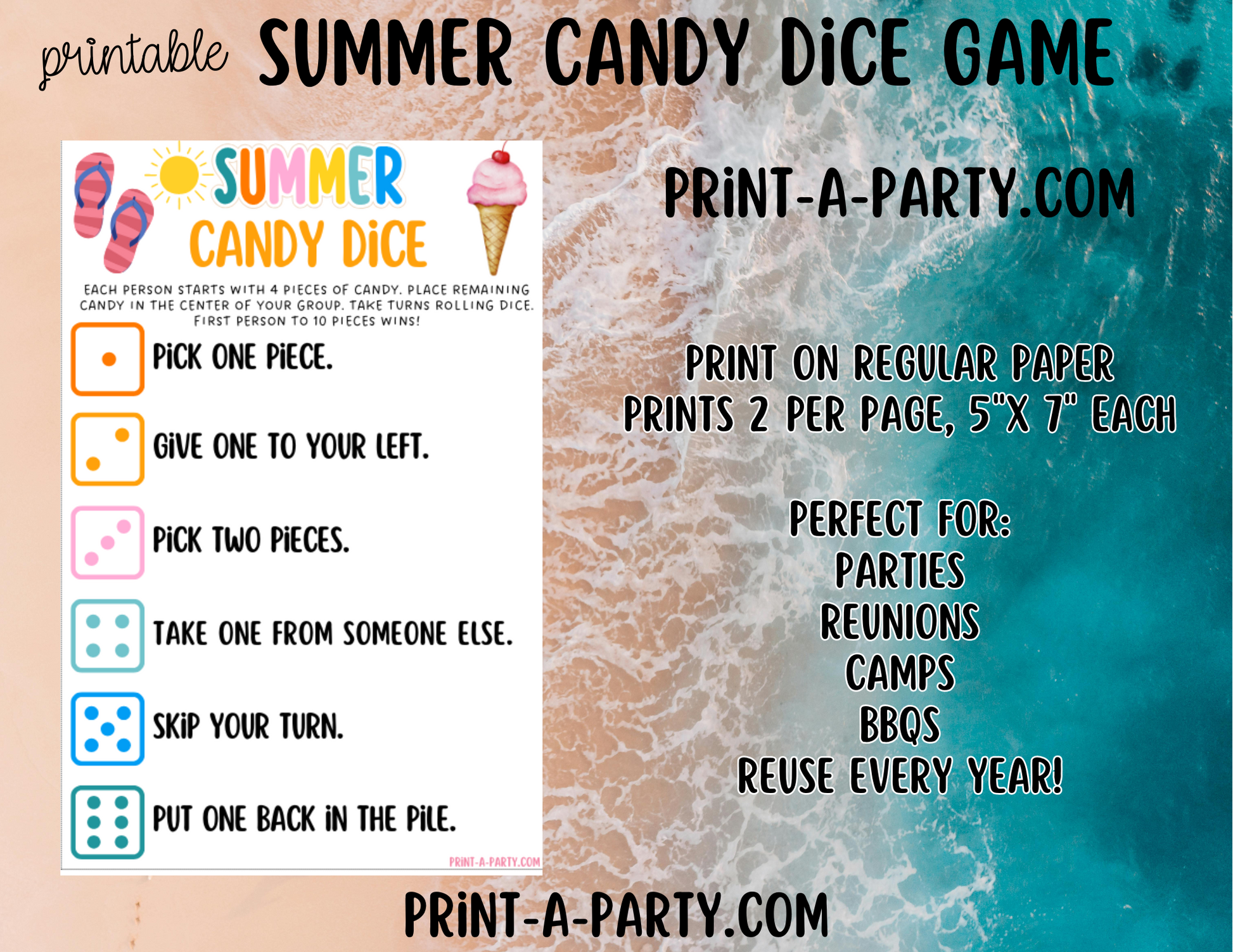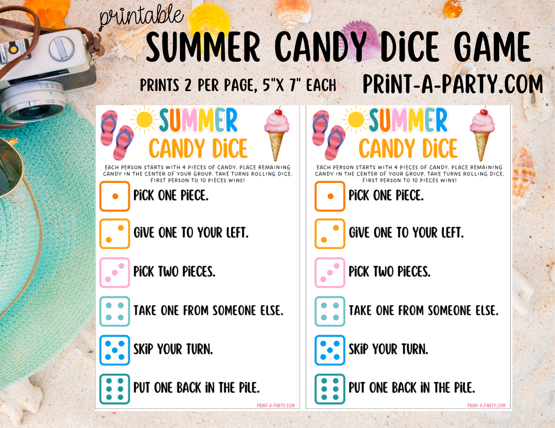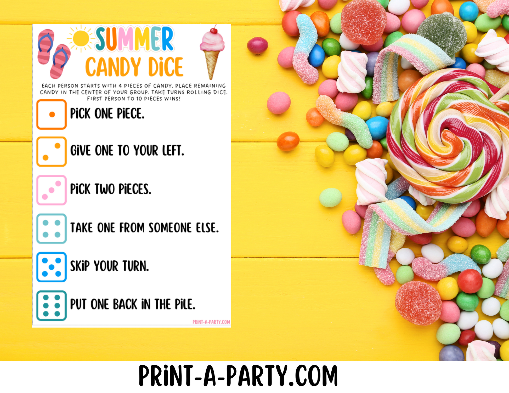 DICE GAME: Summer Candy Dice Game Printable - Fun Summer Party Game for Kids, Classrooms & Family Instant Download