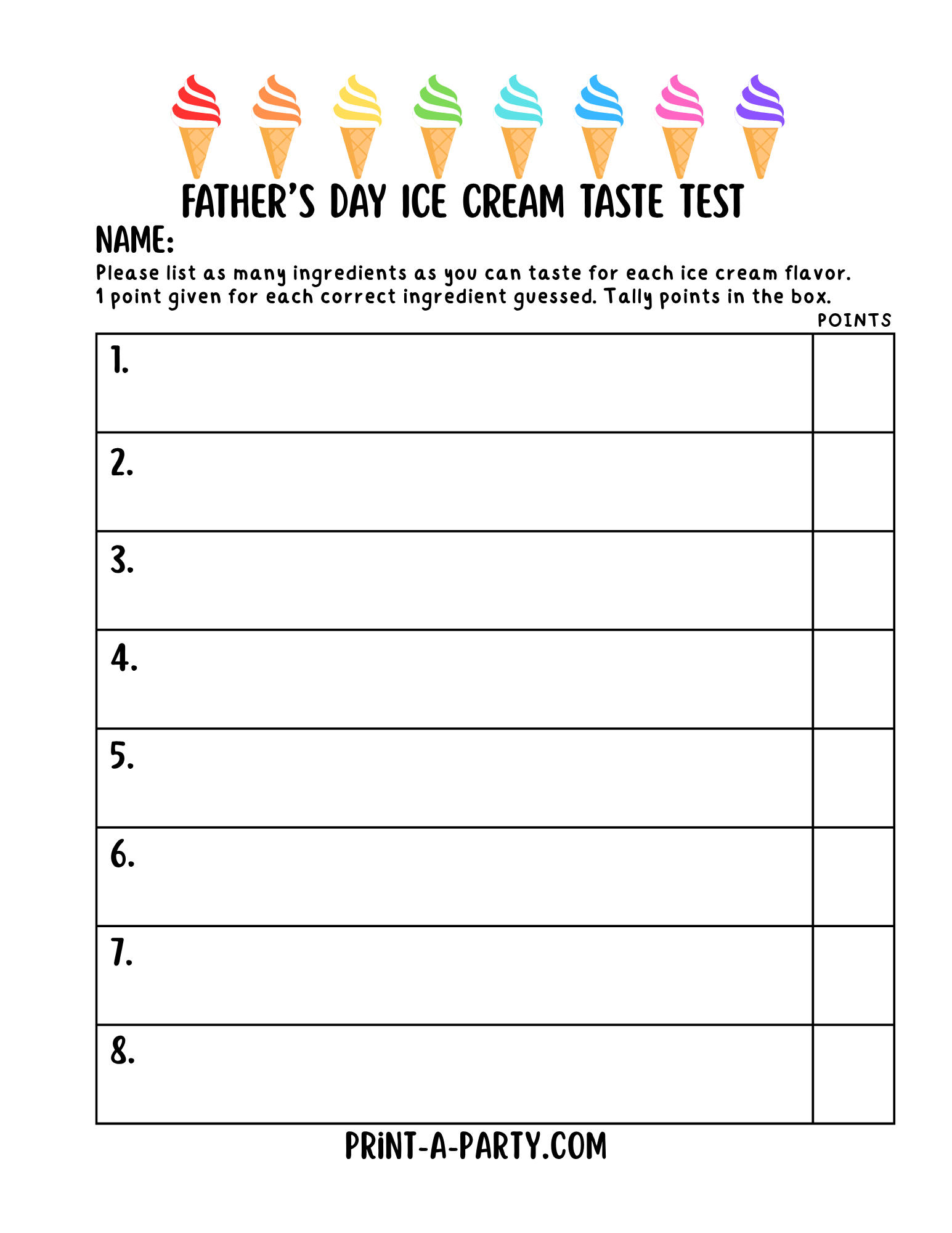 Father's Day Activity - Ice Cream Taste Test Printable - FREE INSTANT DOWNLOAD