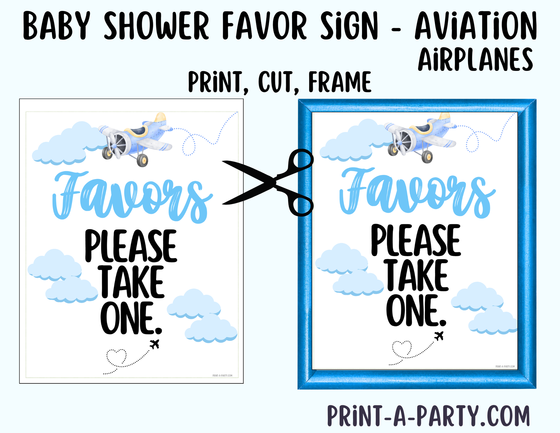 Download, print, and frame your sign today to keep your aviation baby shower favor table looking polished, coordinated, and party-ready.