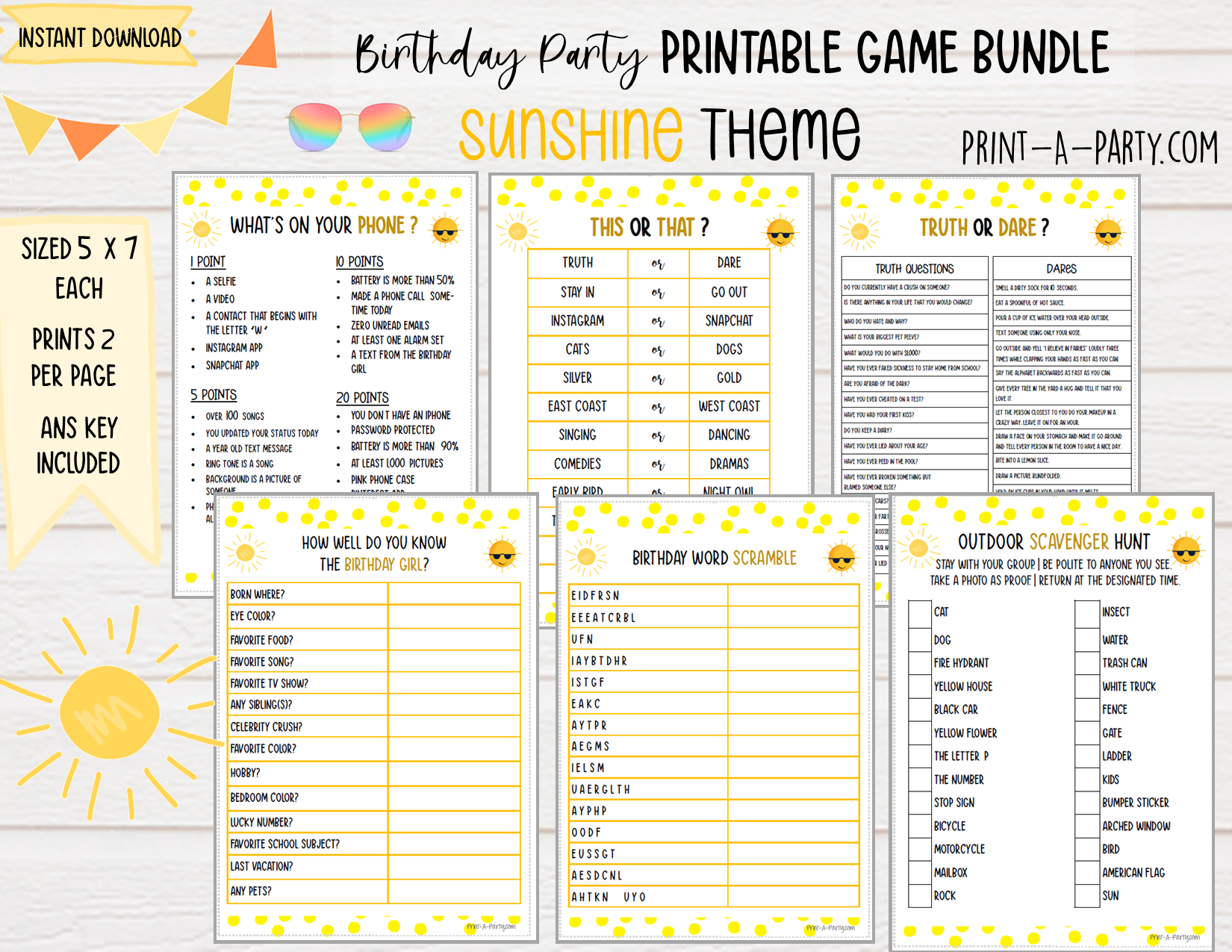 GAMES: SUNSHINE THEME - Sunshine Birthday Party Games – Printable Summer Party Game Bundle