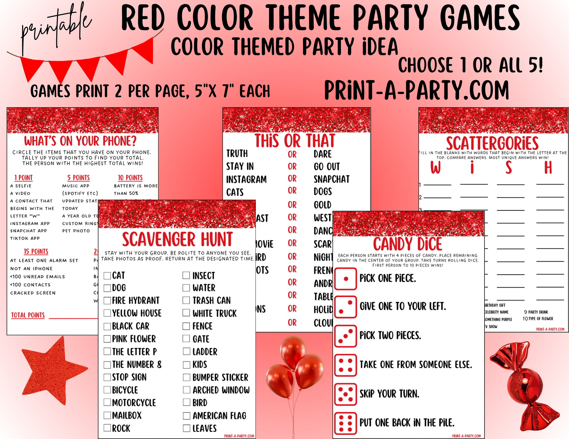 GAMES: COLOR PARTY RED THEME | Color Party | Red Party Games | Red Party Ideas | INSTANT DOWNLOAD