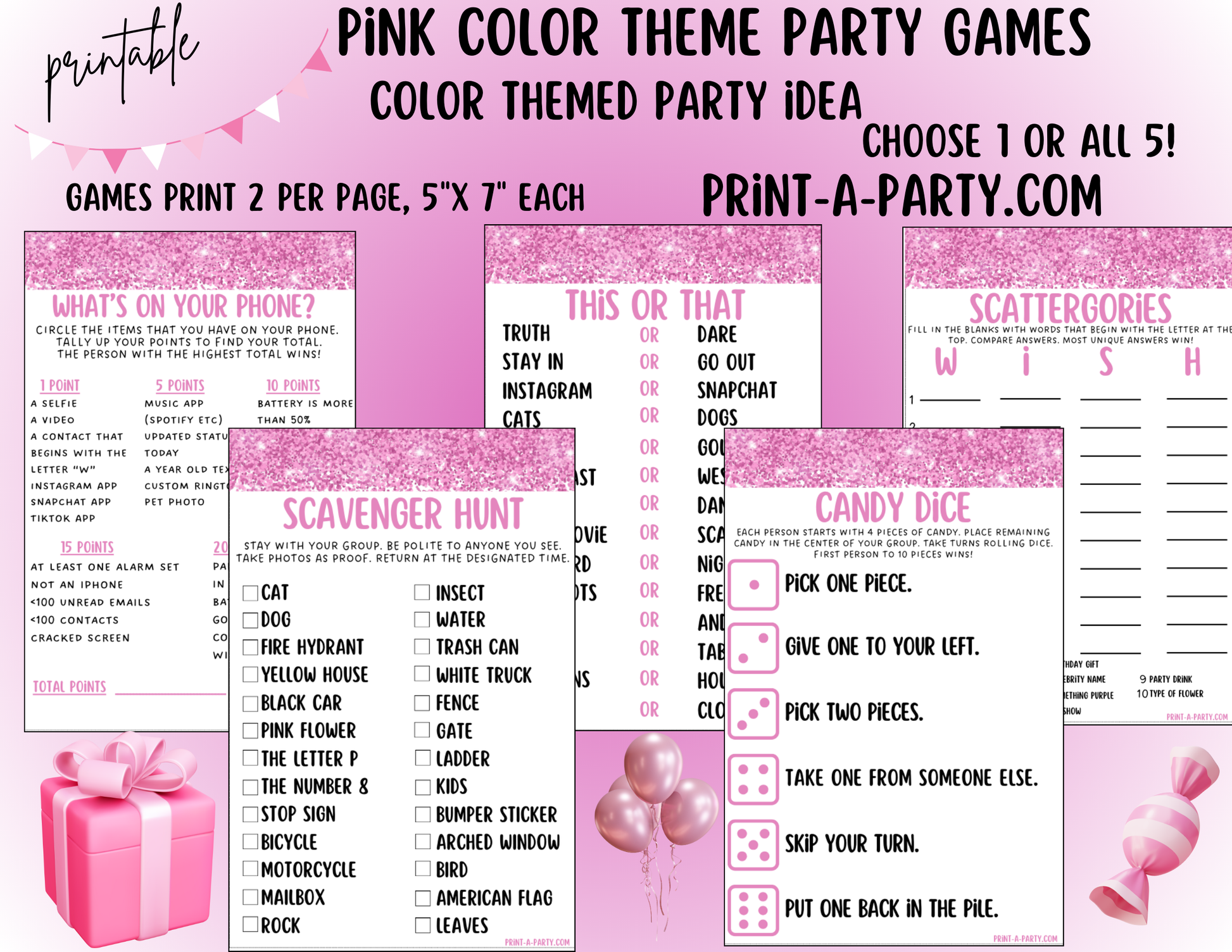 GAMES: COLOR PARTY PINK THEME | Color Party | Pink Party Games | Pink Party Ideas | INSTANT DOWNLOAD