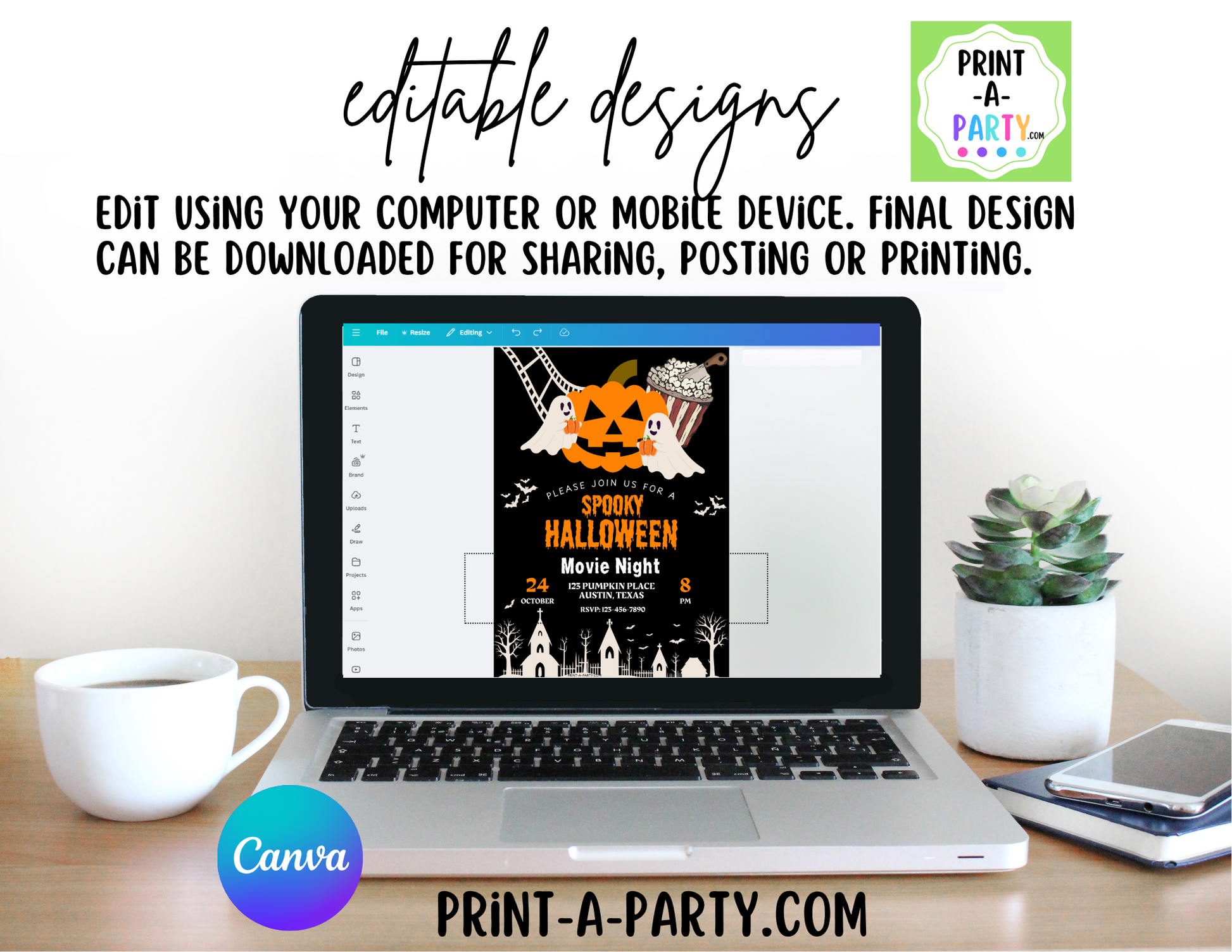 Create and send a spooky, stylish invitation in minutes – it’s never been easier to kick off your Halloween festivities with a personalized touch!