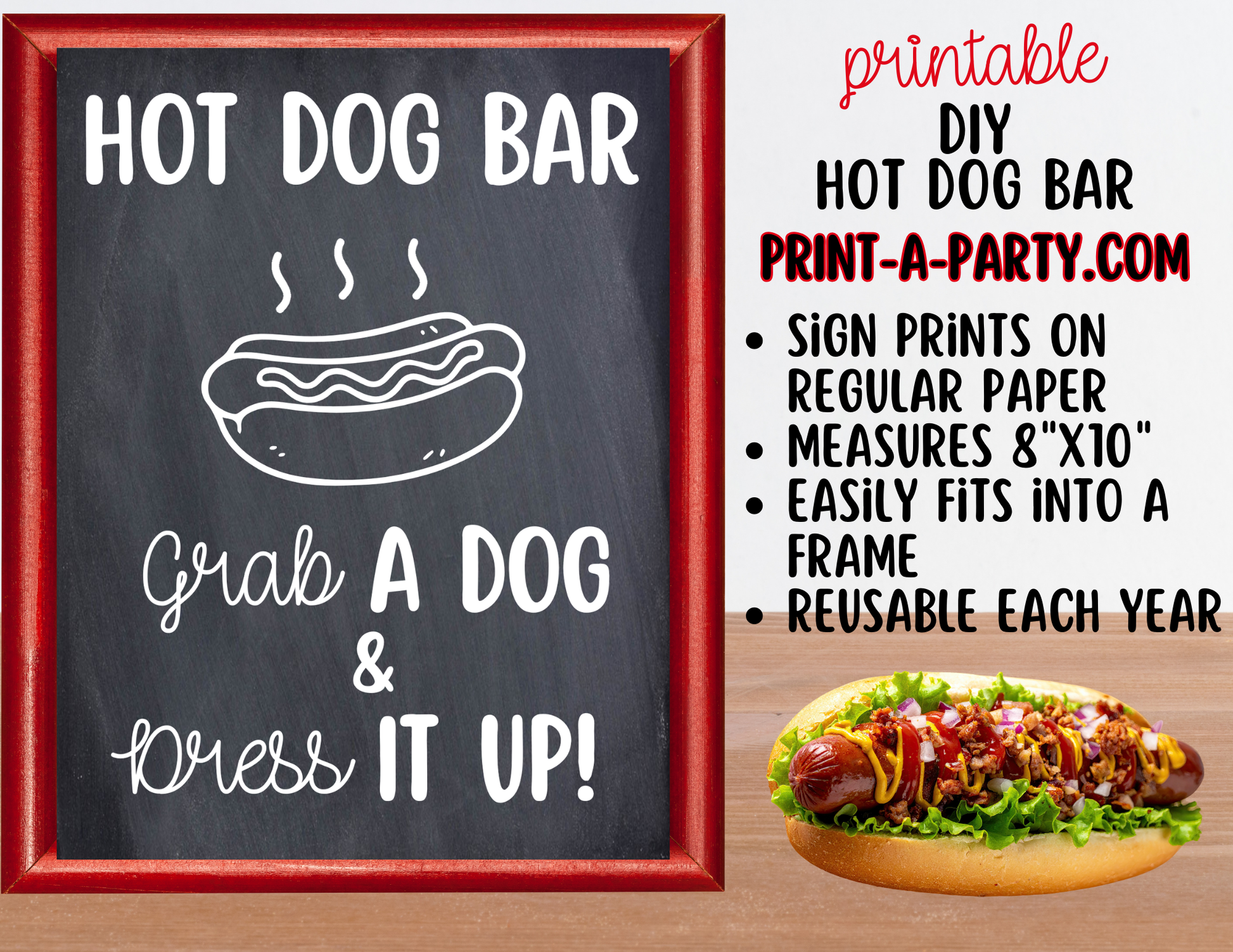 - Includes an 8x10" Hot Dog Bar sign (prints on standard 8.5" x 11" paper, measures 10" x 7.5")