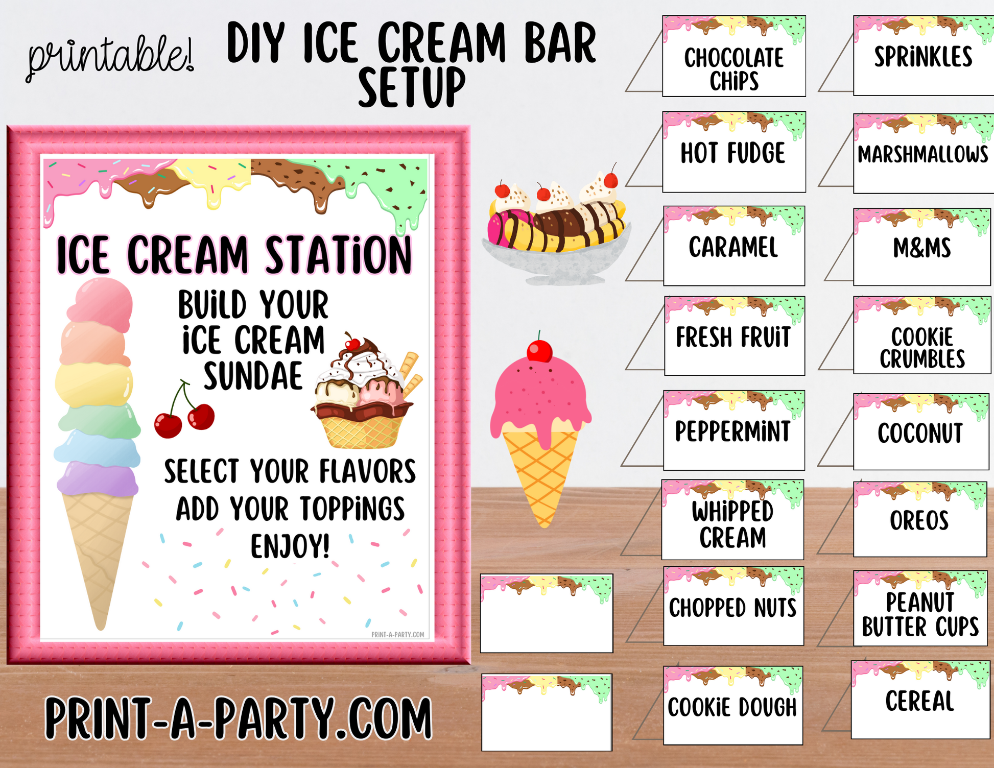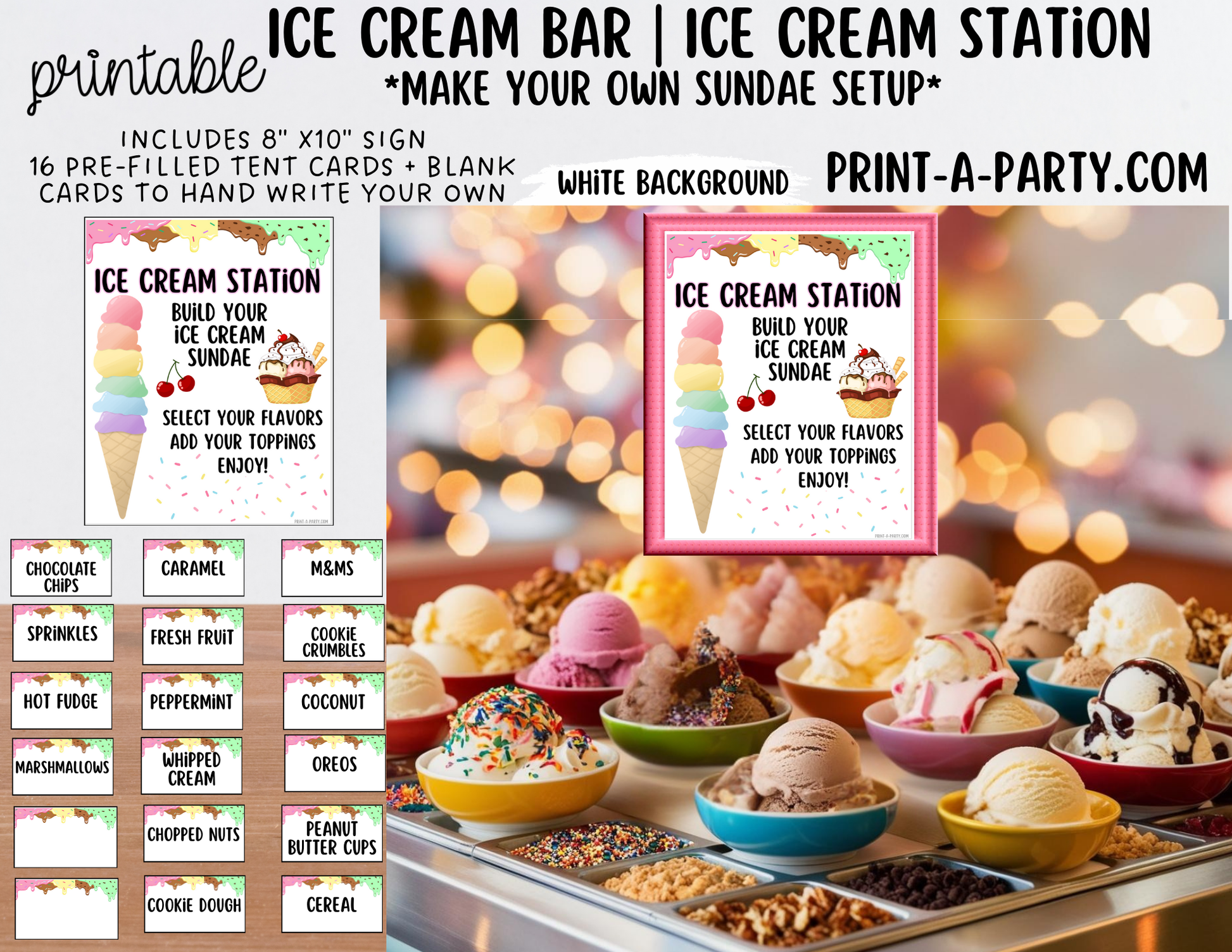 Ice Cream Bar Printable – Dessert Station Sign & Topping Tent Cards for Parties and Celebrations
