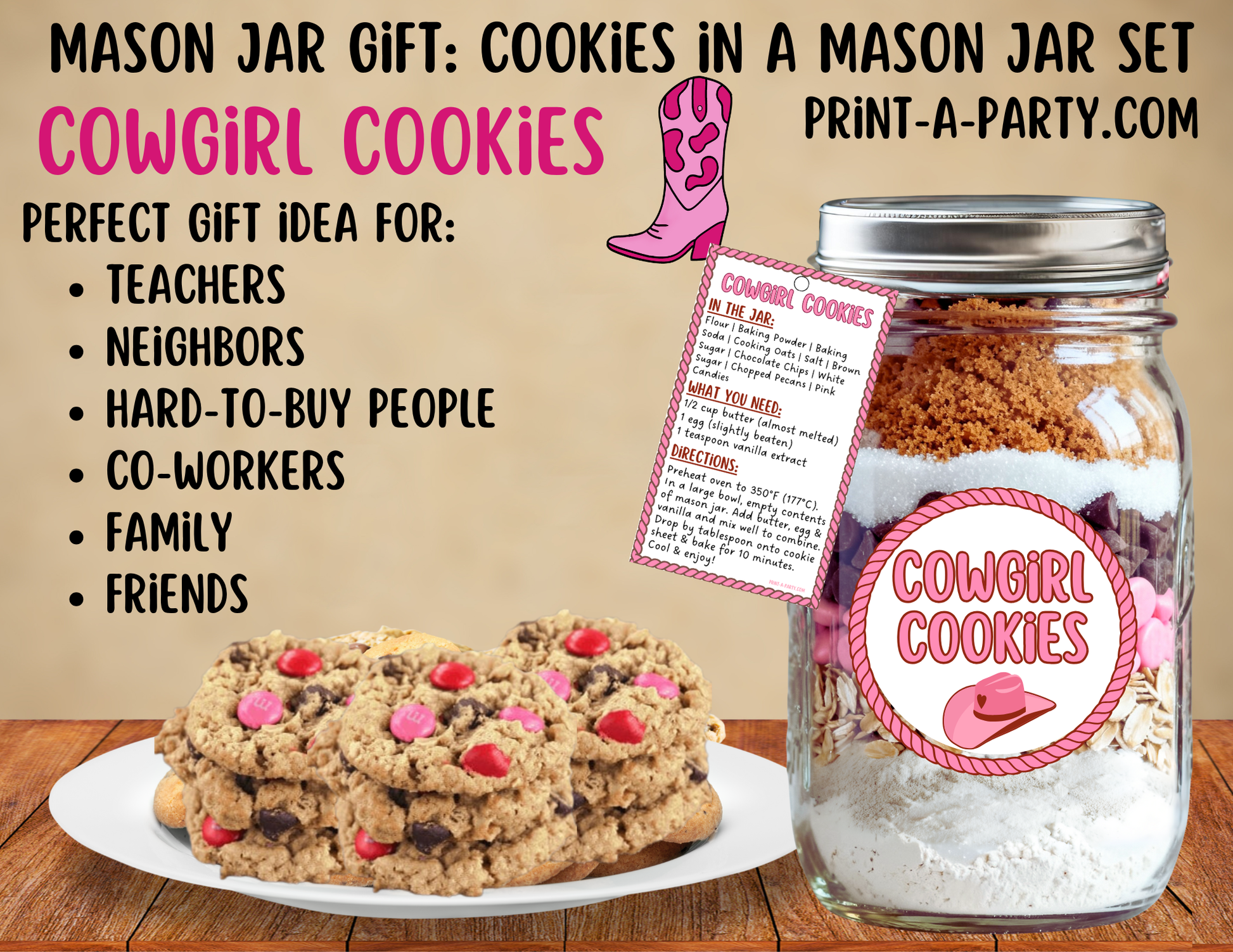 MASON JAR GIFT: Cowgirl Cookies in a Mason Jar Gift Kit - Printable Cookie Mix Labels & Tags
