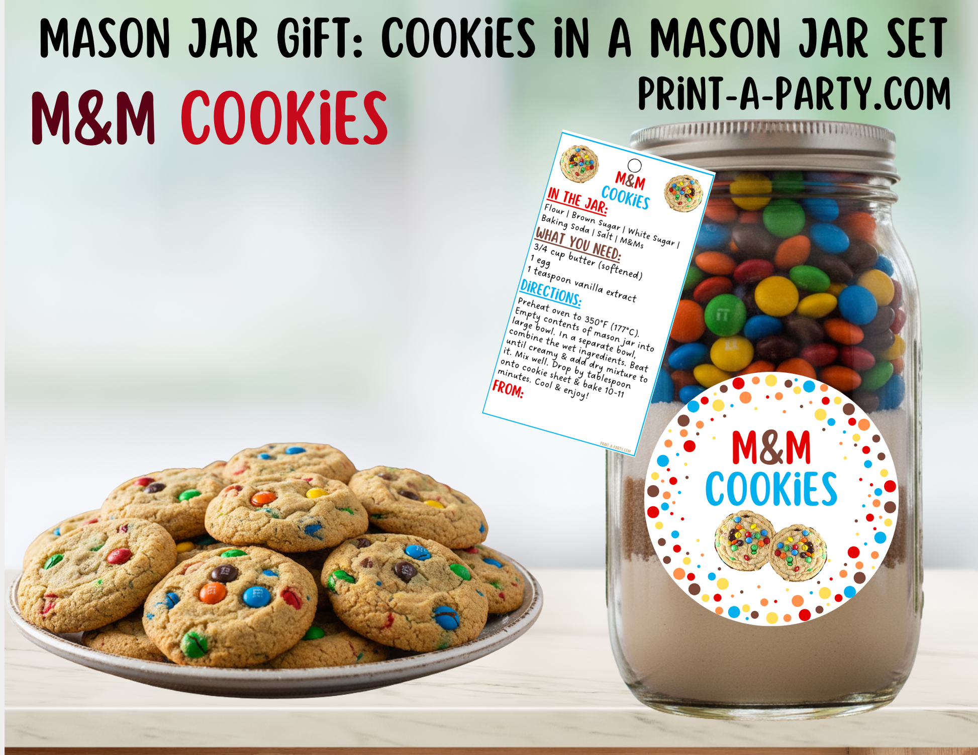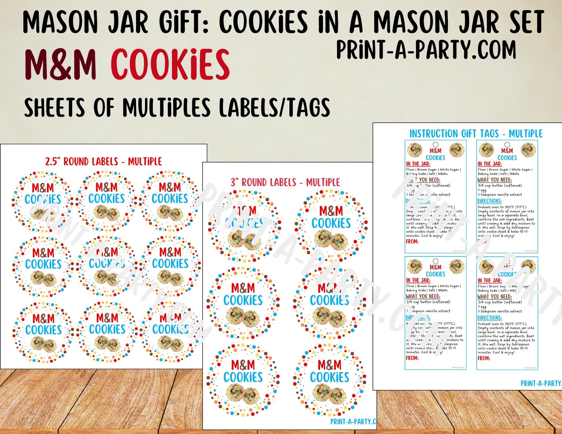 M&M Cookies in a Printable Mason Jar Gift - Labels & Tag, Recipe Instructions