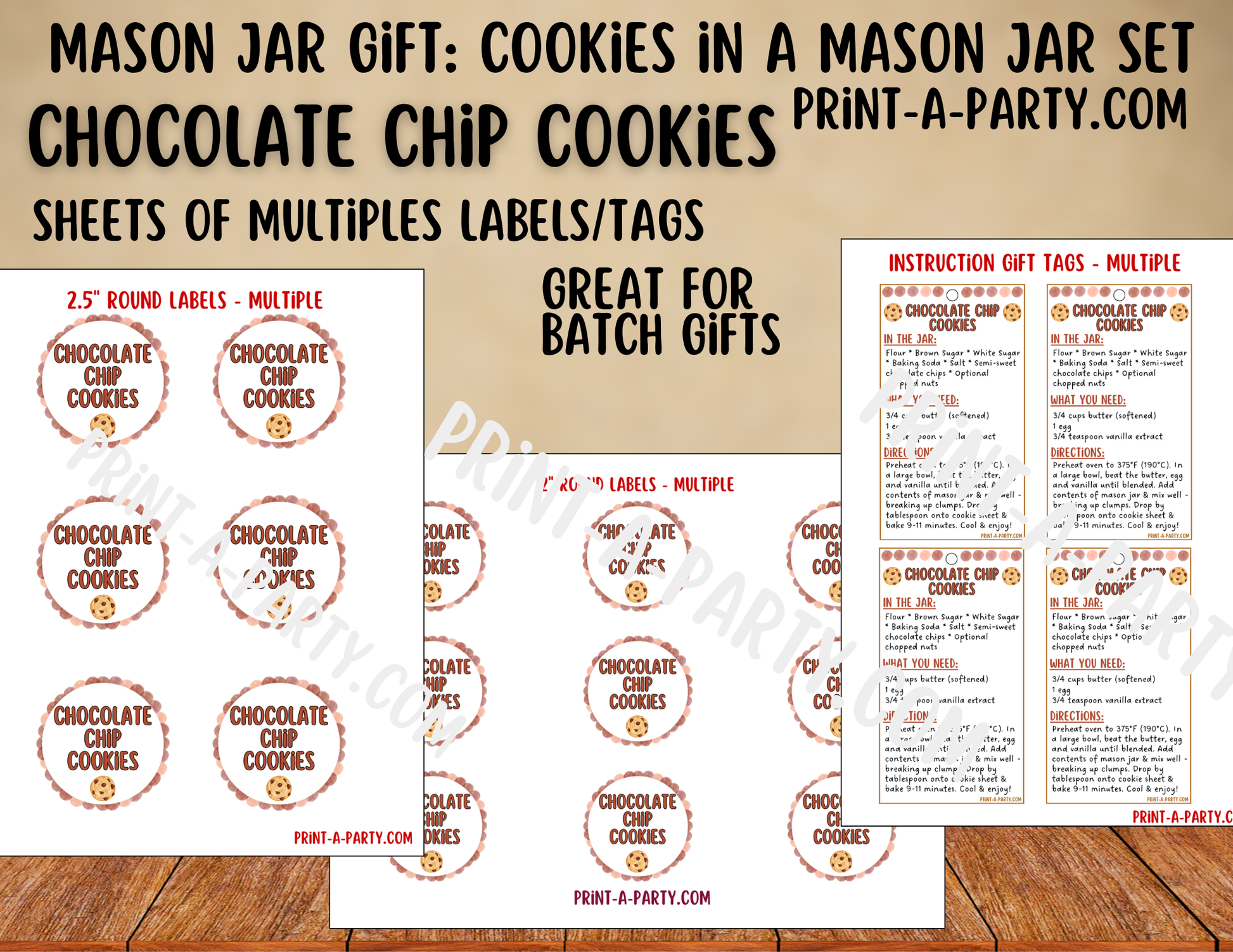 MASON JAR GIFT: Chocolate Chip Cookies in a Mason Jar Gift Kit - Printable Mason Jar Labels & Tag, Recipe Instructions