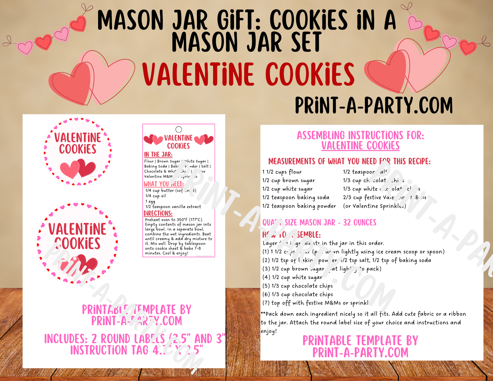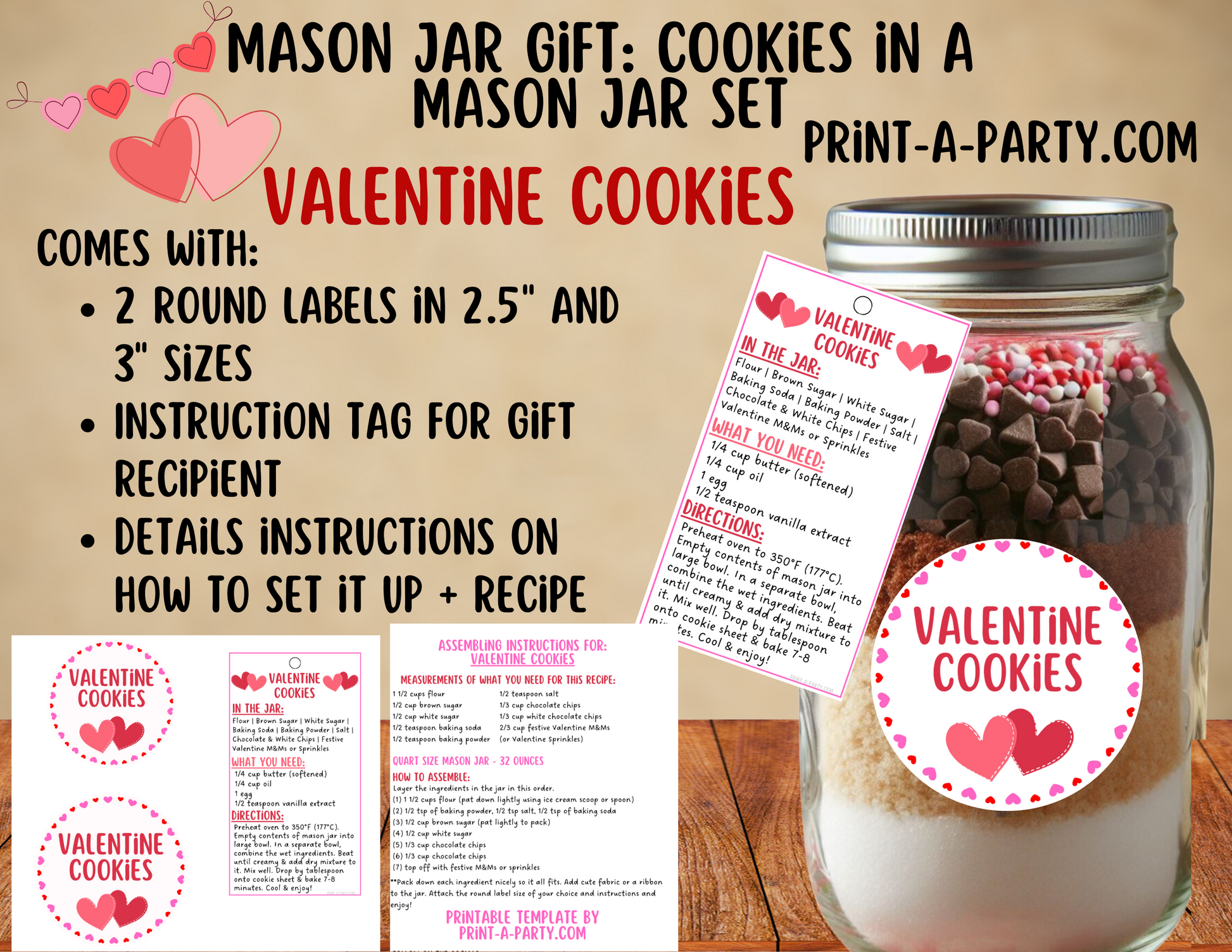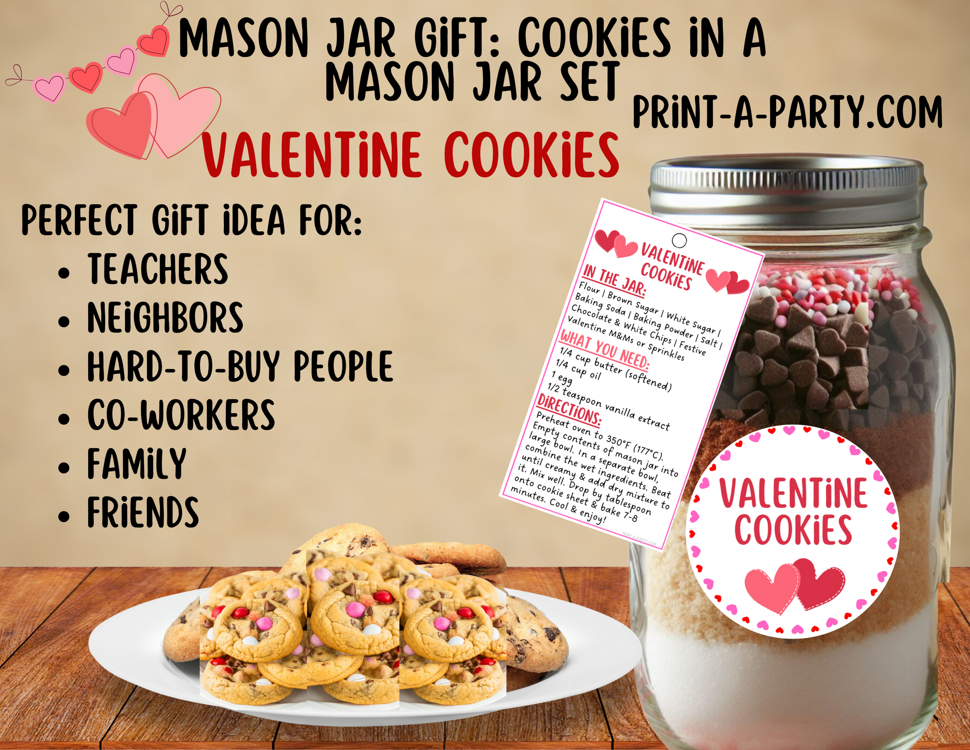 Give your loved ones a special treat this Valentine's Day with my printable Valentine's Cookies Mason Jar Gift! This affordable and heartfelt gift kit is a perfect choice for anyone on your gift list. Our printable kit makes it effortless to assemble, making it a meaningful and practical gift. It's ideal for spoiling your partner, friends, family, teachers, neighbors, and anyone else who deserves some love!