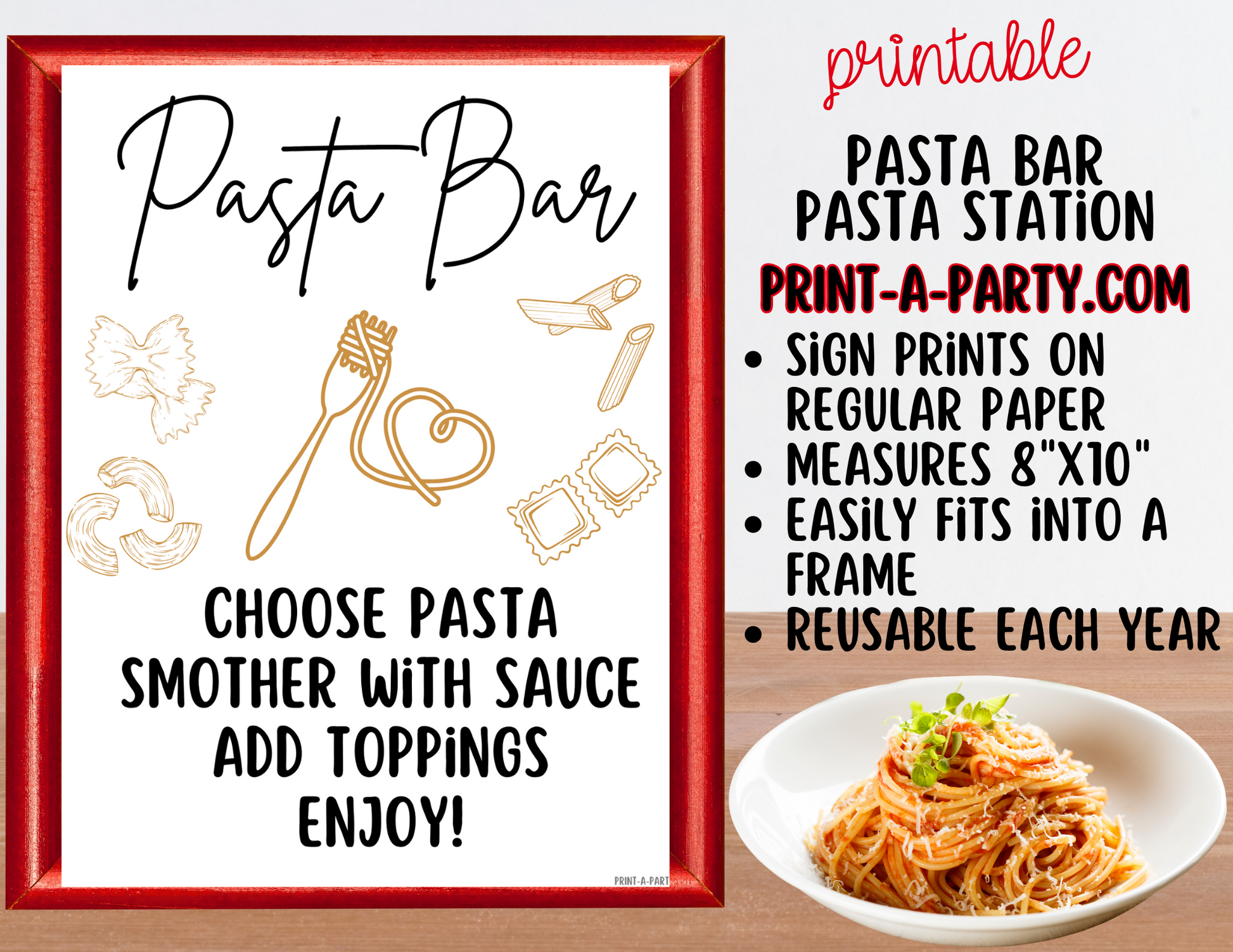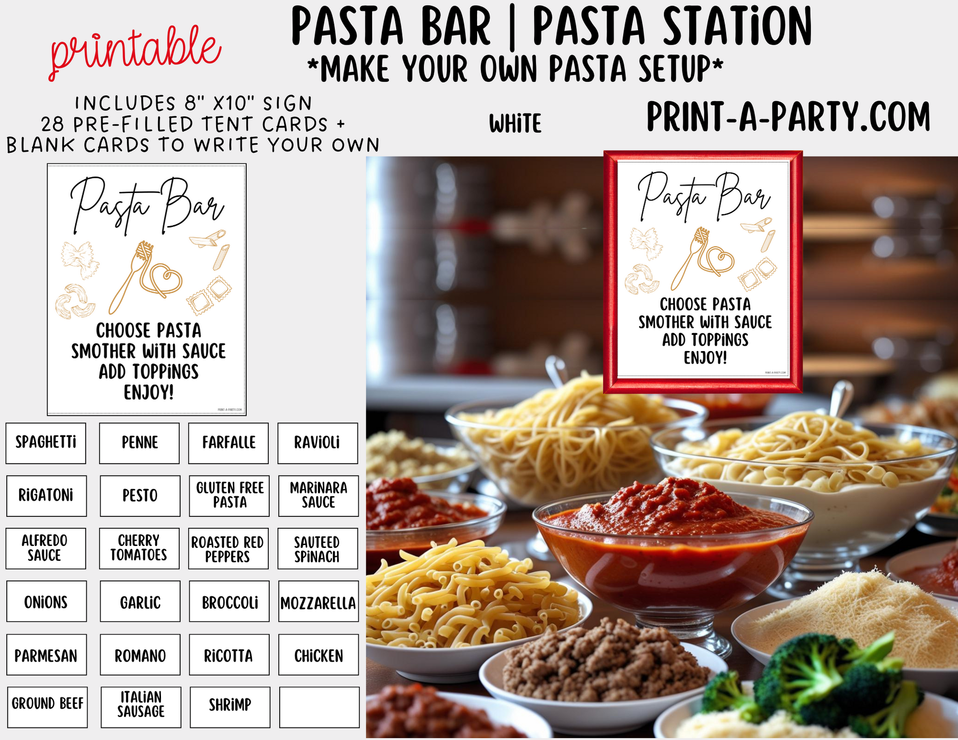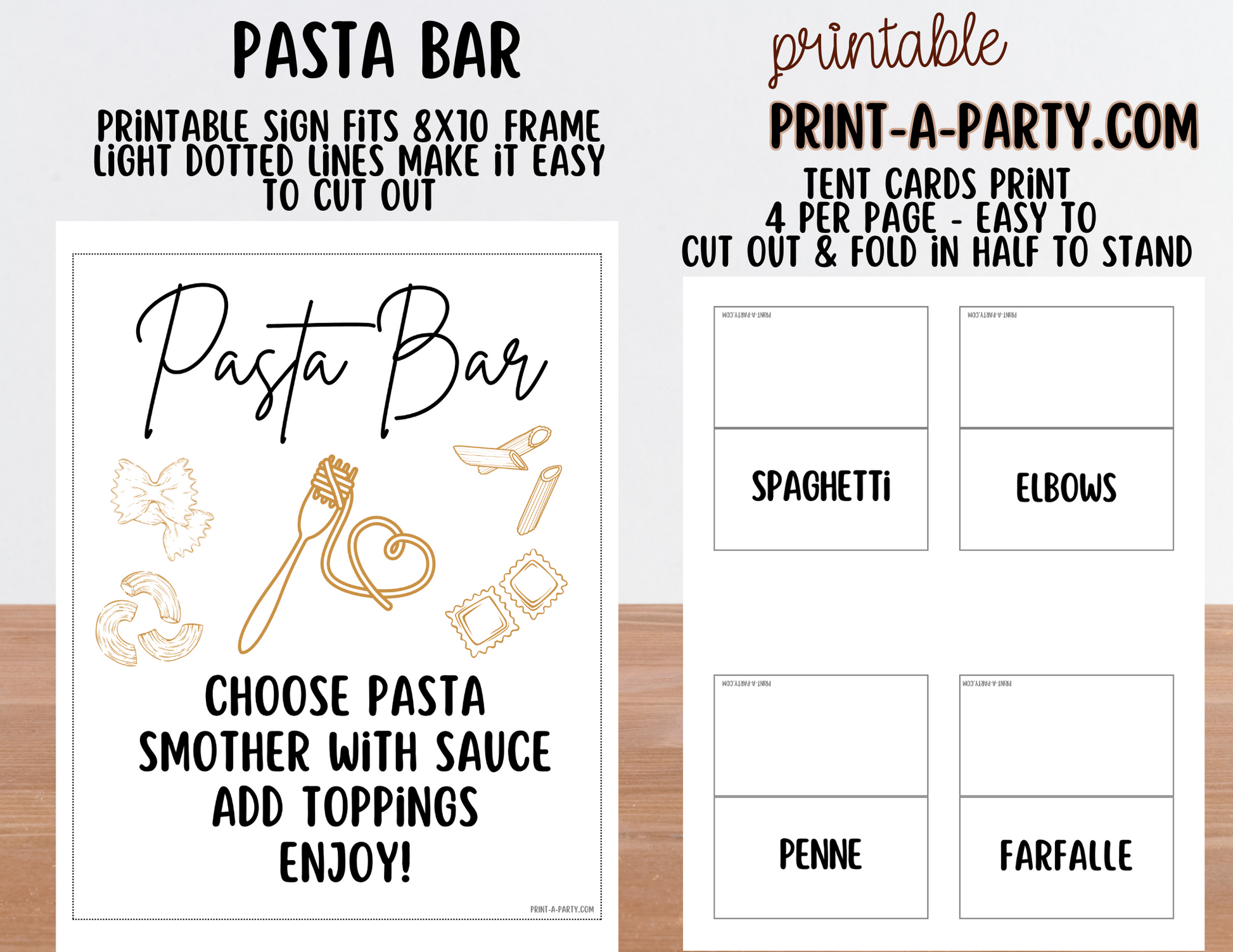 Just download, print on cardstock or regular paper, trim, and set up your pasta bar in minutes – it’s the perfect blend of style and convenience!