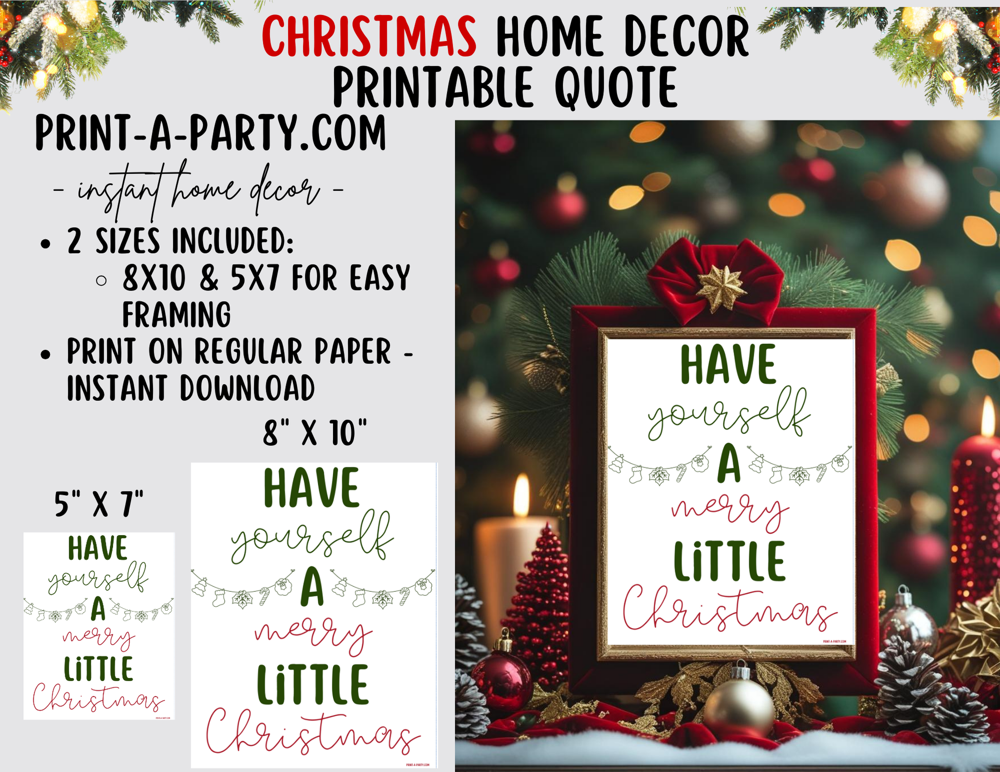 HAVE YOURSELF A MERRY LITTLE CHRISTMAS Printable Christmas Sign, Instant Holiday Decor in 8x10 and 5x7