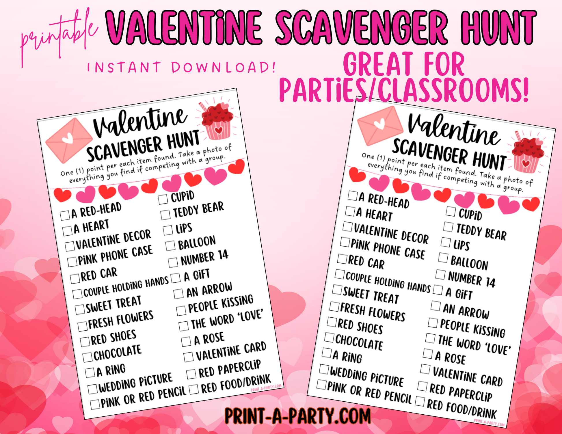 Get ready for an exciting adventure with this printable Valentine's Day Scavenger Hunt! Spread love and joy as kids search for Valentine's items, whether in the classroom or at a party. With just a few minutes, easily print this game on regular paper and let the fun begin! Games are printed on regular paper, with 2 per page measuring 5"x7" each - light dotted lines make cutting them out a breeze.