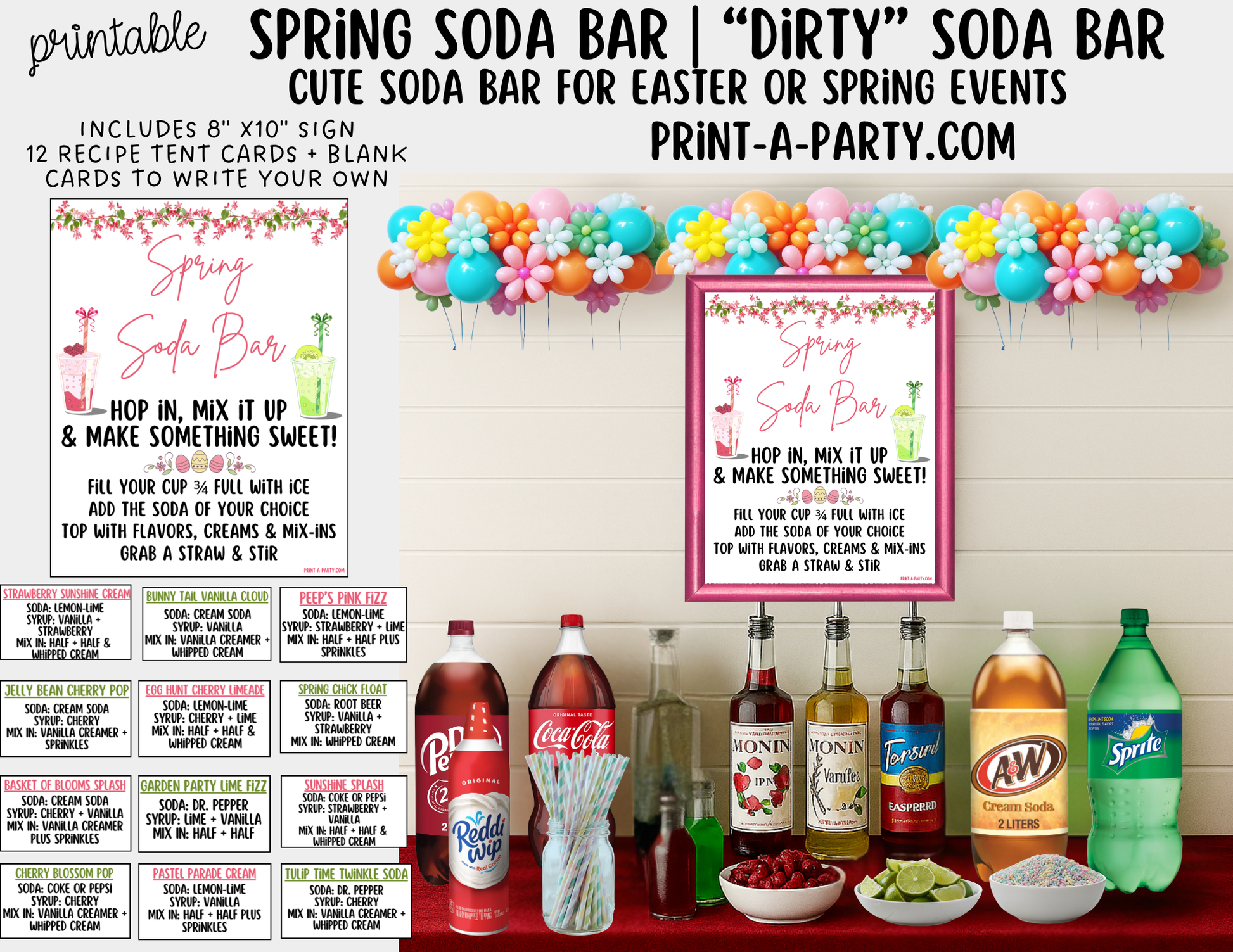 SODA BAR - Printable Spring (Easter) "Dirty" Soda Bar Printable Kit - Sign & Recipe Tent Cards (12 recipes!) Drink Station Decor
