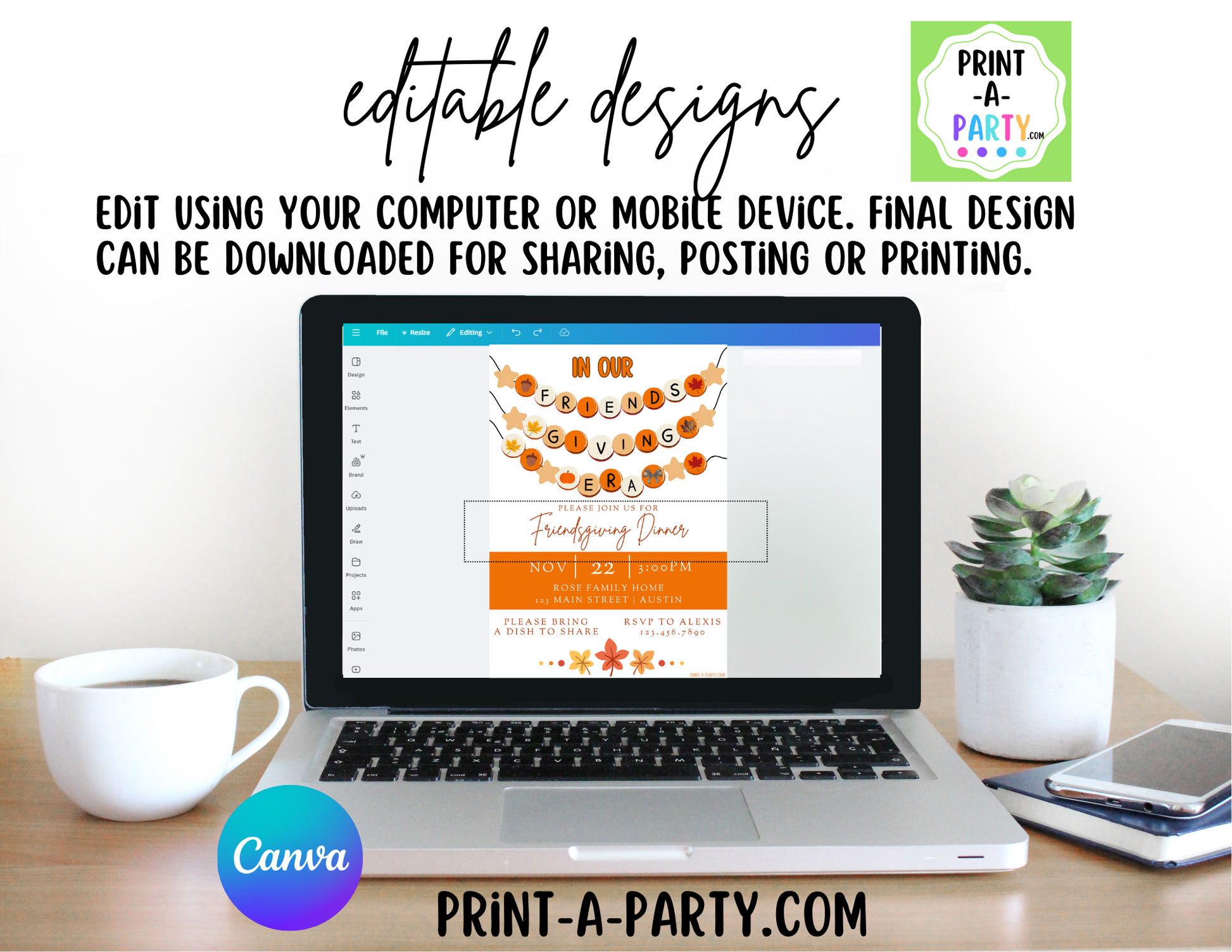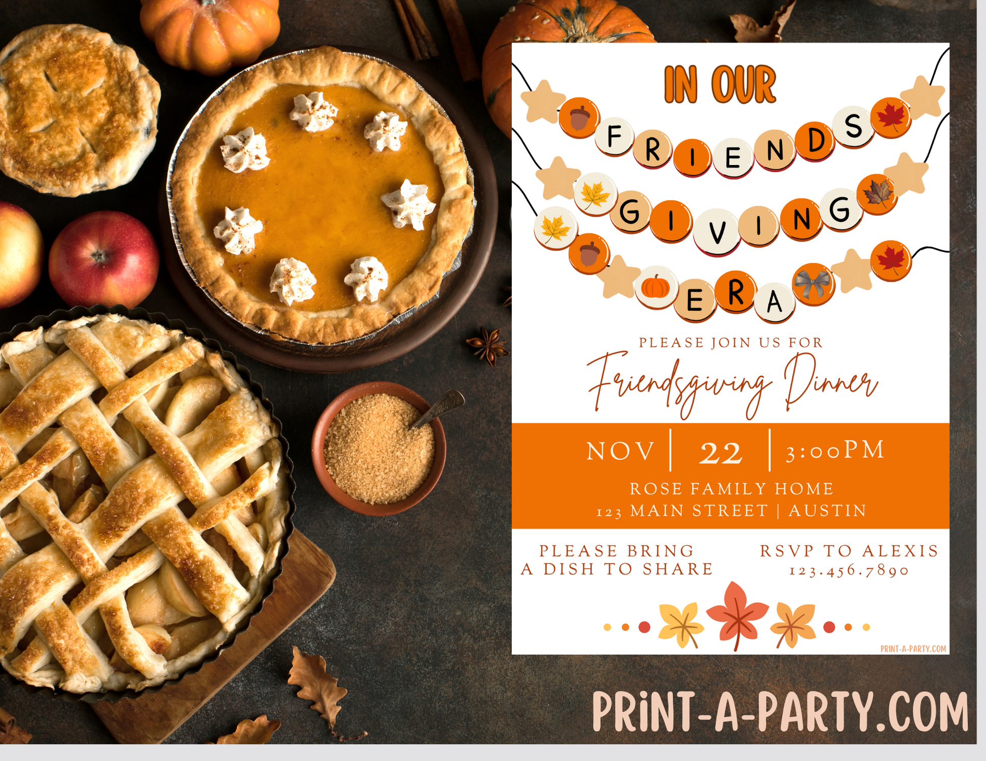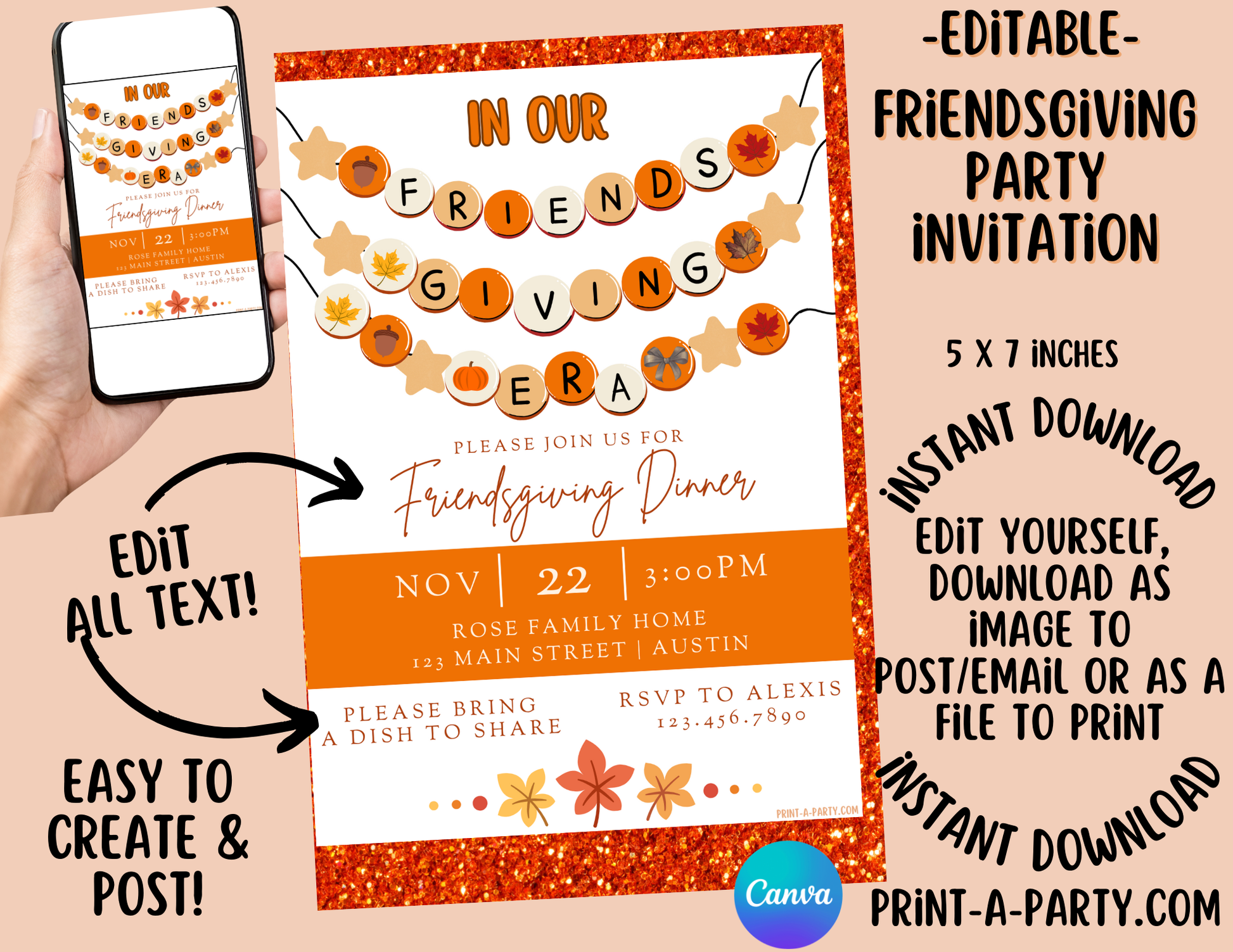Set the tone for a fun, stylish, and heartfelt Friendsgiving with this “In Our Friendsgiving Era” editable invitation!