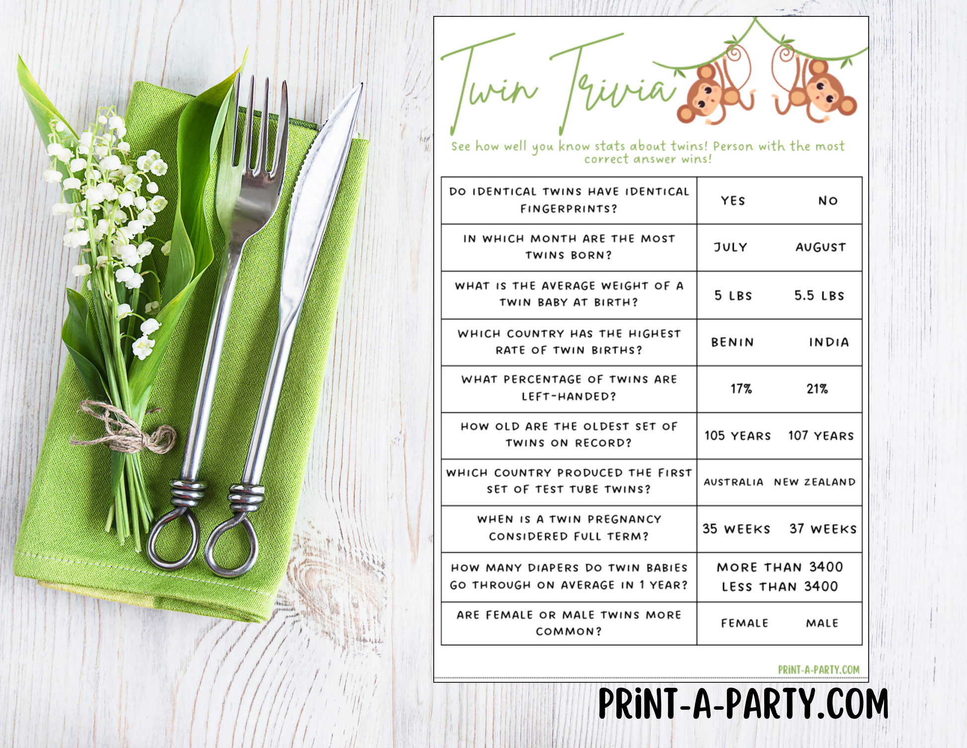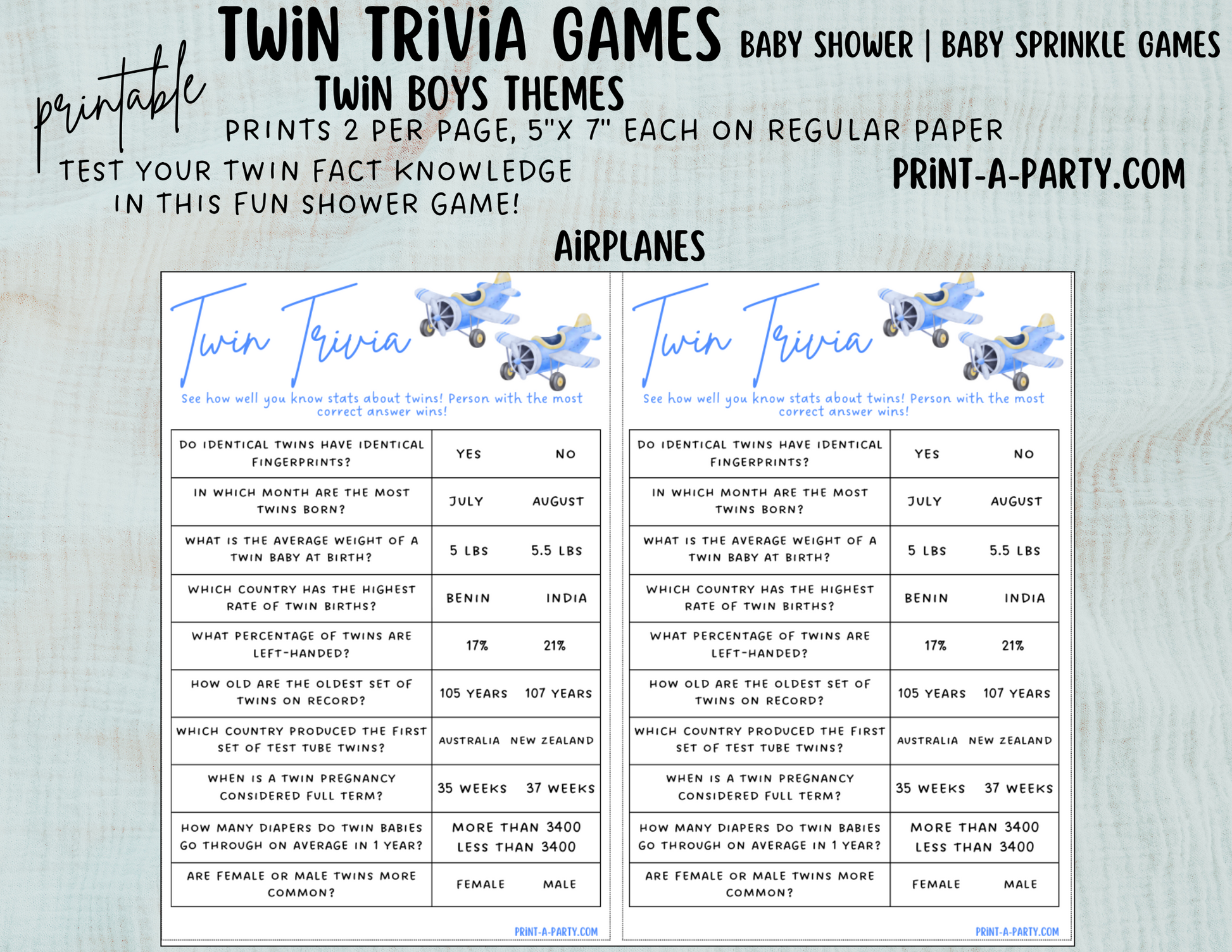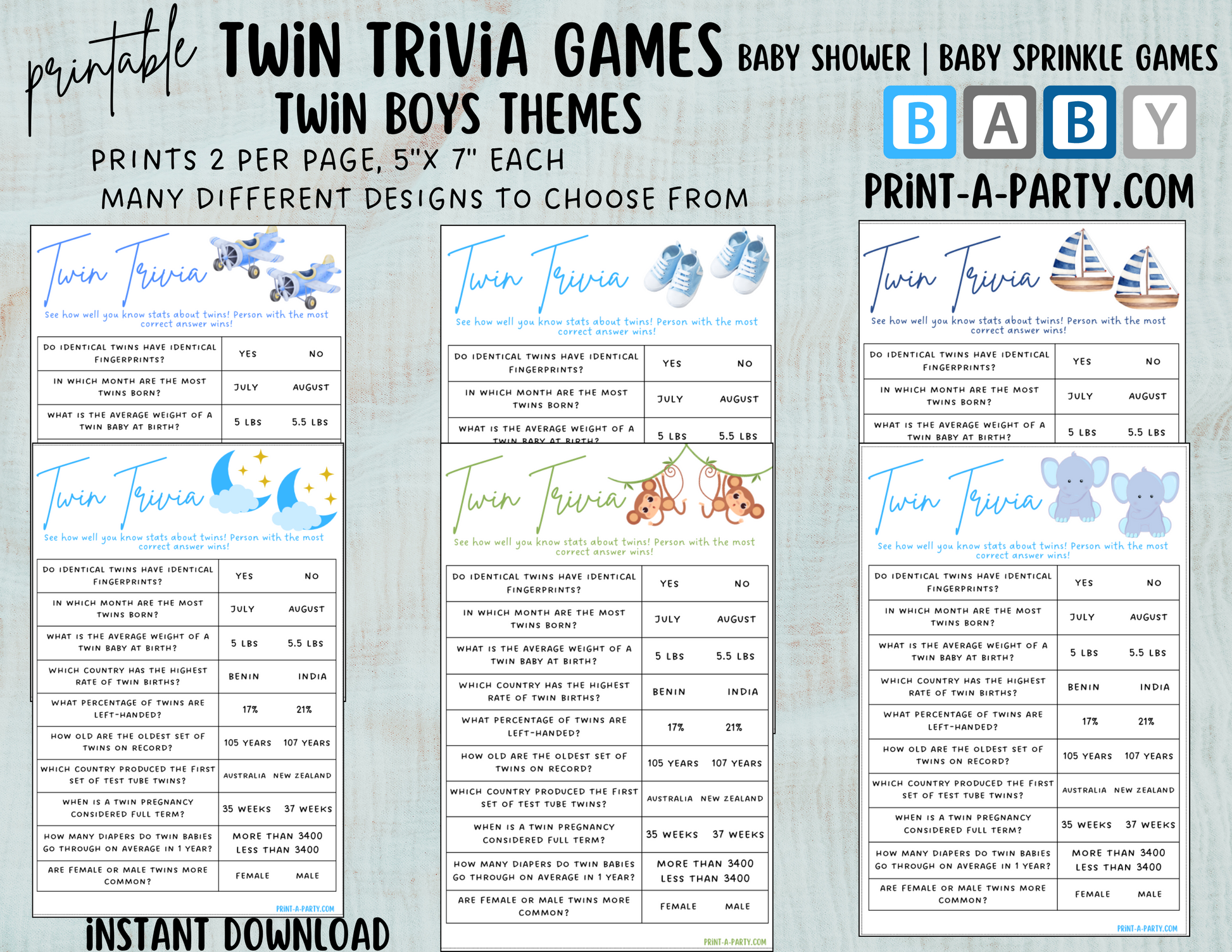 TWIN TRIVIA Game | TWIN BOYS | Twin Boys Baby Shower Idea | Twin Boys Baby Shower Activities - INSTANT DOWNLOAD