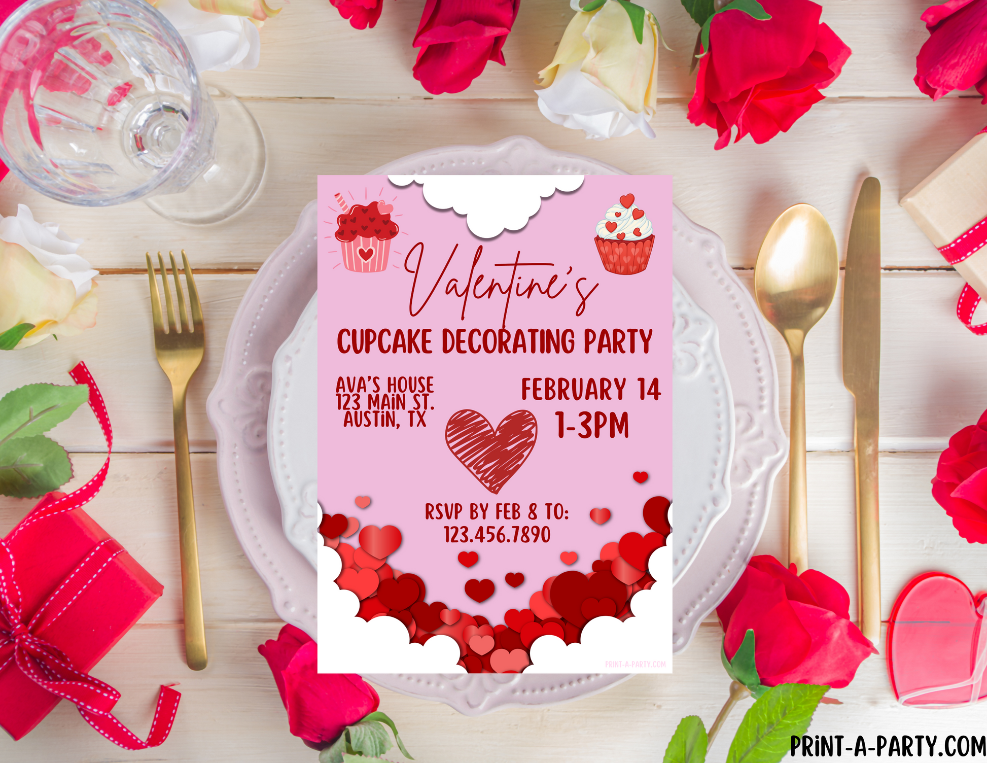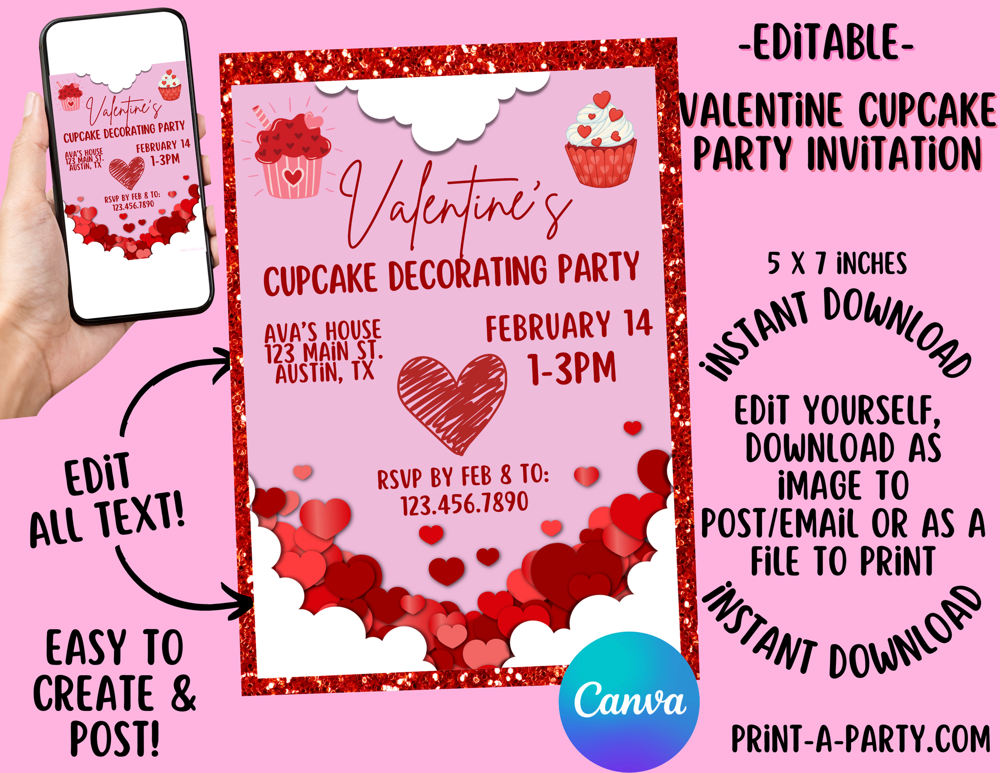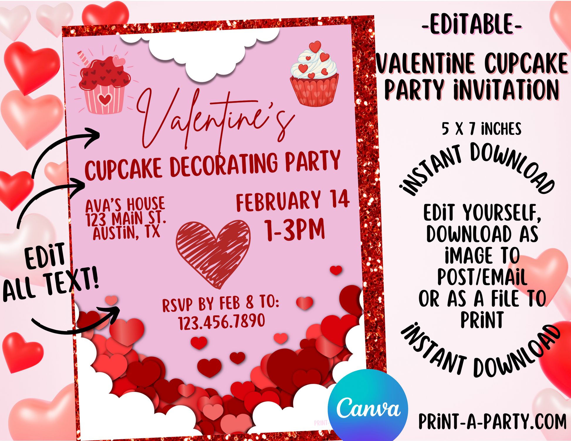 VALENTINE PARTY EDITABLE INVITATION: VALENTINE'S CUPCAKE PARTY - EDITABLE PRINTABLE | Valentine's Day Cupcake Party Invite | Valentine Party Customization | Valentine Decorating Cupcakes