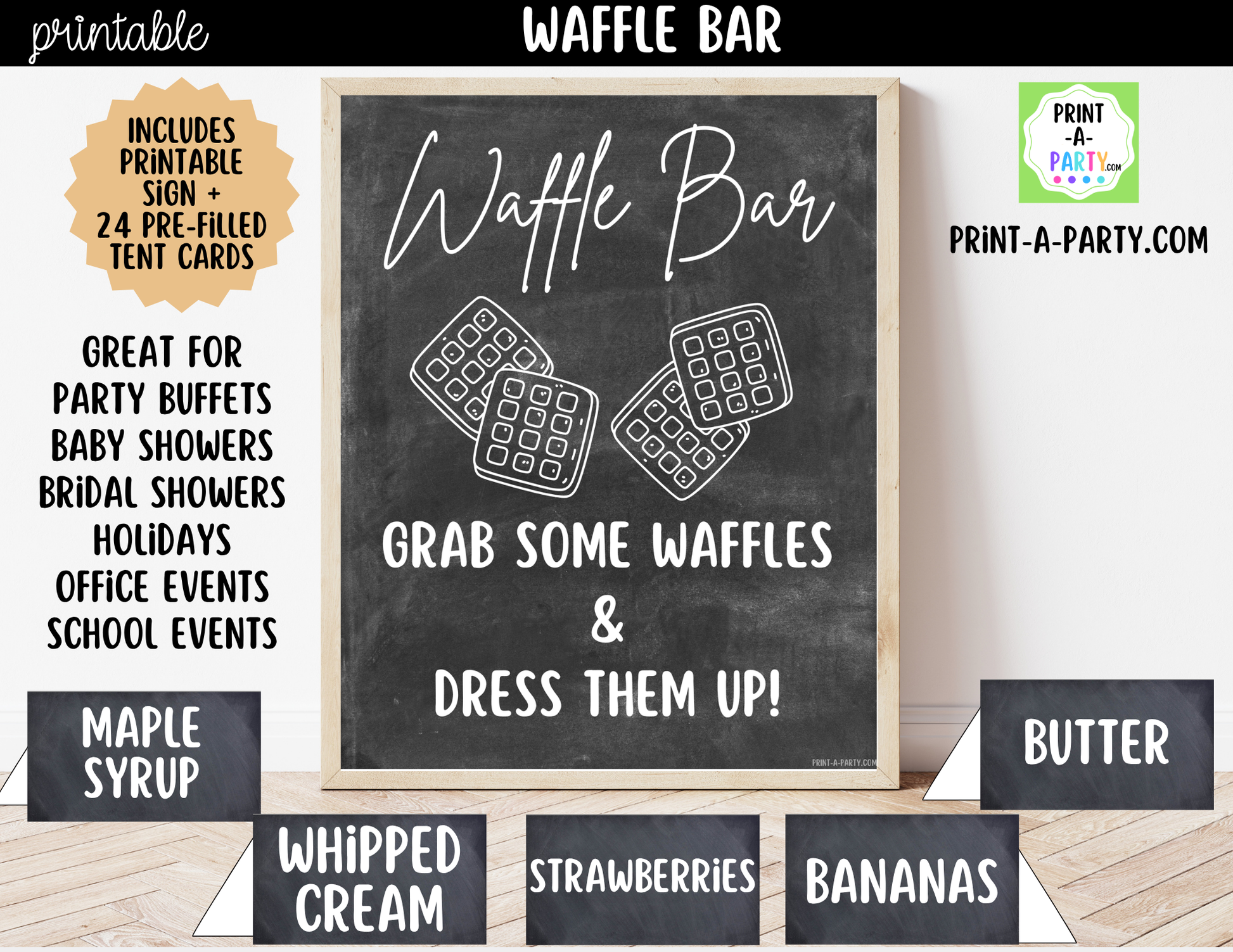 Simply download, print, cut, and set up your waffle bar in minutes!