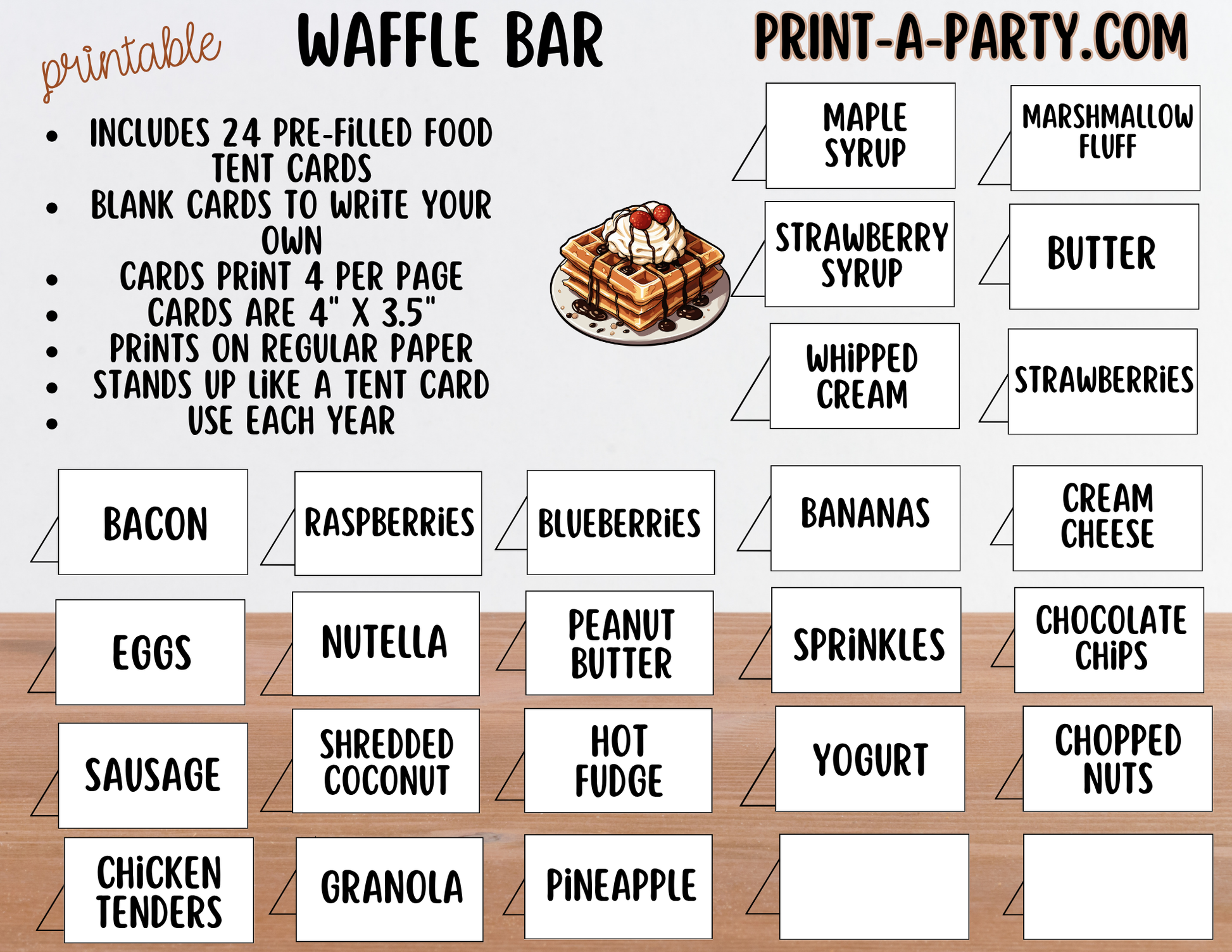 Simply download, print, cut, and set up your waffle bar in minutes!